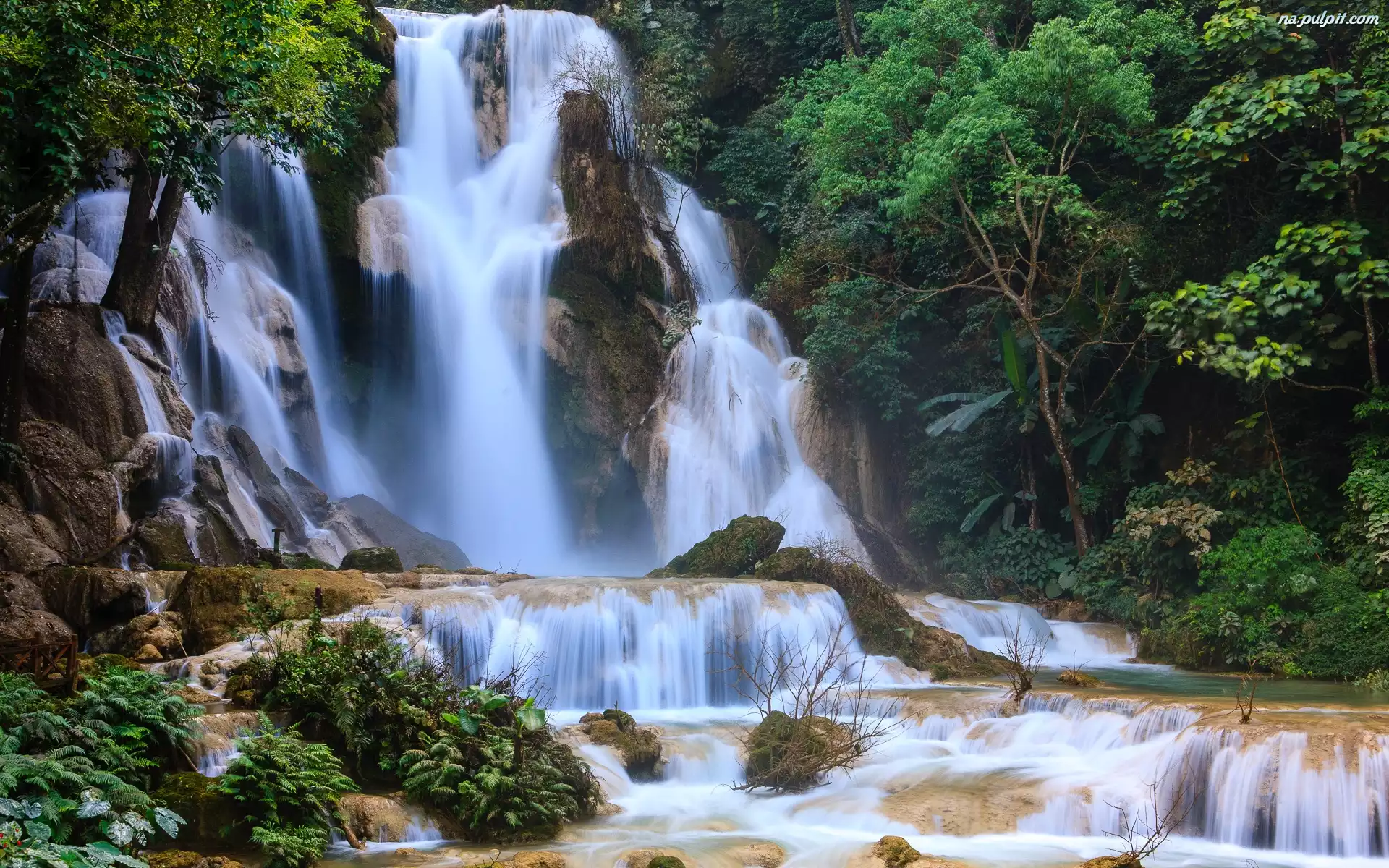 Drzewa, Wodospad, Skały Na Pulpit
