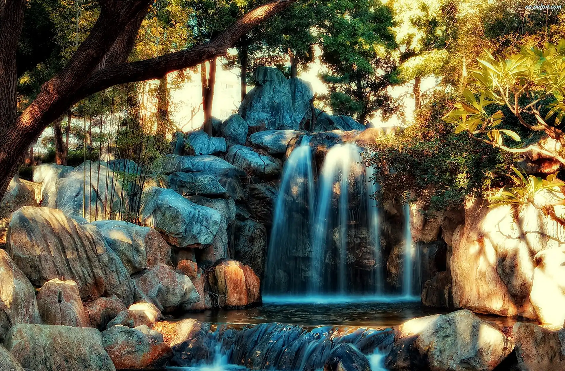Drzewo, Wodospad, Kamienie Na Pulpit