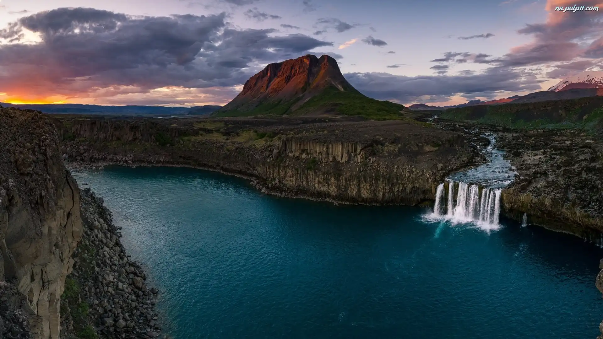 Wodospad, Rzeka, Góra, Chmury Na Pulpit