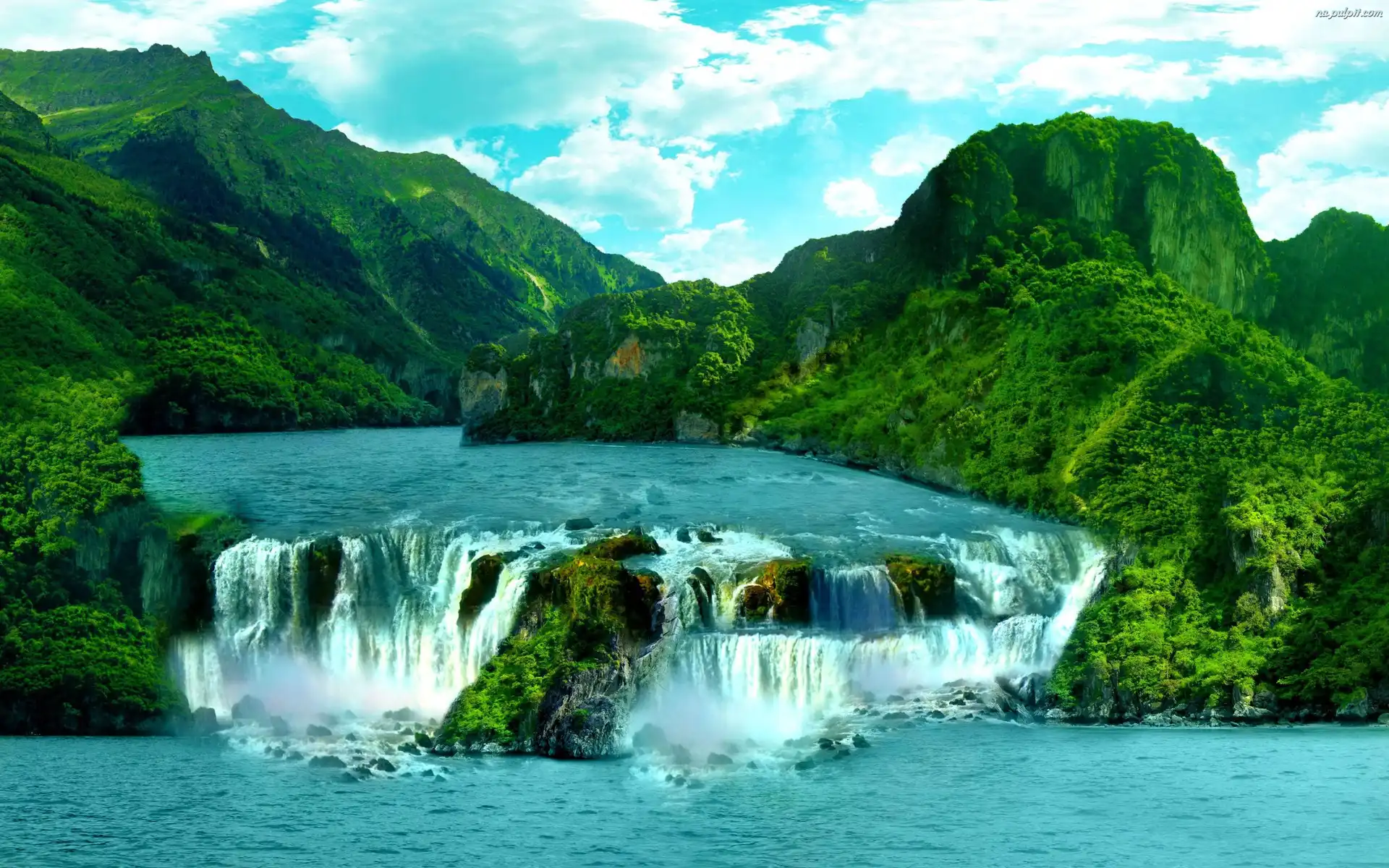 Góra Góry Wodospad, Krajobraz, Kamienie Rzeka, Góry Wodospad Zamieć, Góry, śnieg Góry, Las Góry Wodospad Tęcze Wodospad wysoki Wodospad Góry, Jezioro Kumamoto, Gorogataki, Wodospad, Prefektura palmy, Chmura, Góry, Niebo