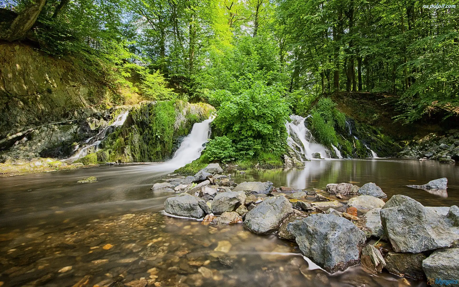 Kamienie, Wodospad, Drzewa Na Pulpit
