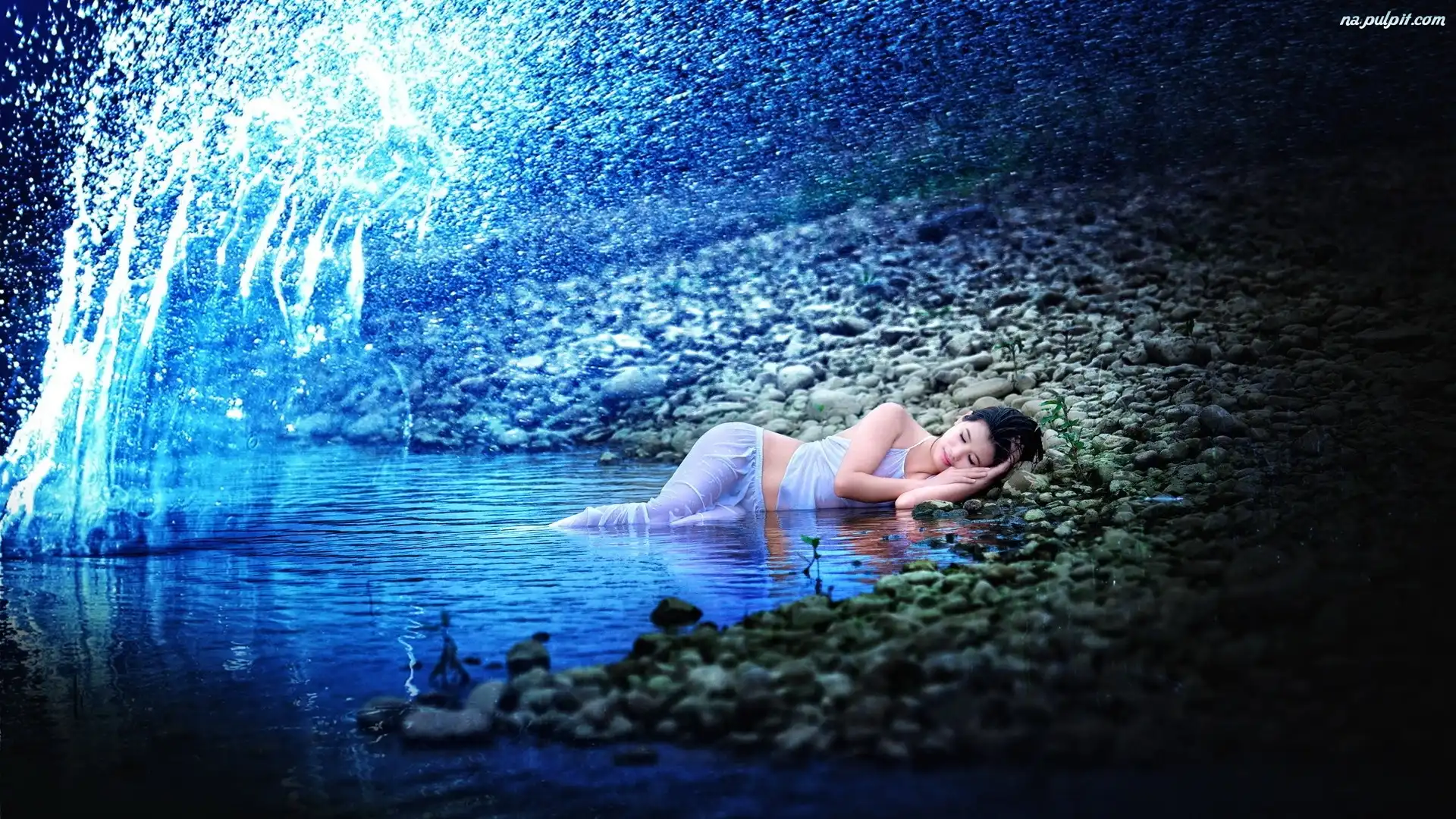 Kobieta, Wodospad, Kamienie Na Pulpit