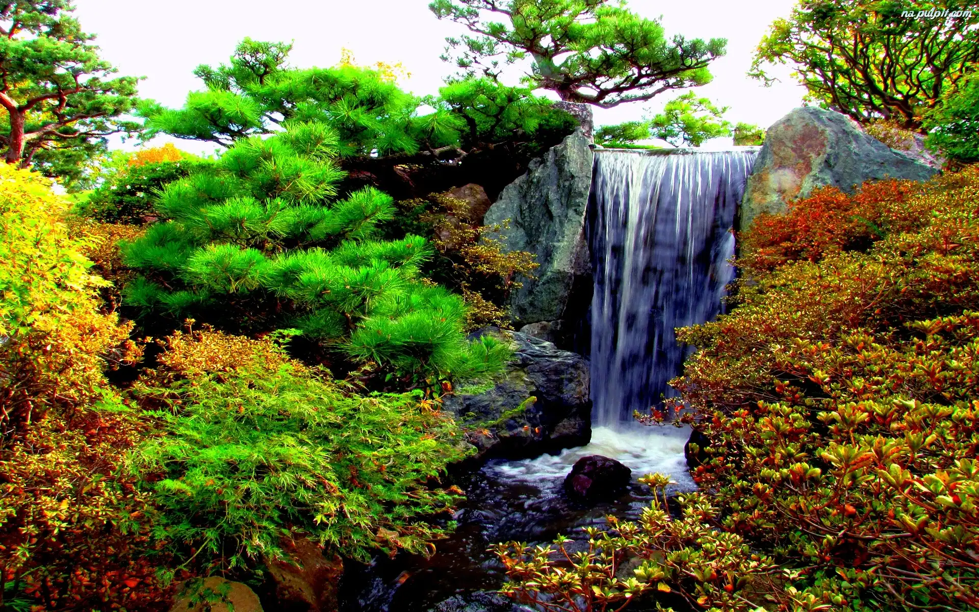 Krzewy, Wodospad, Skały Na Pulpit