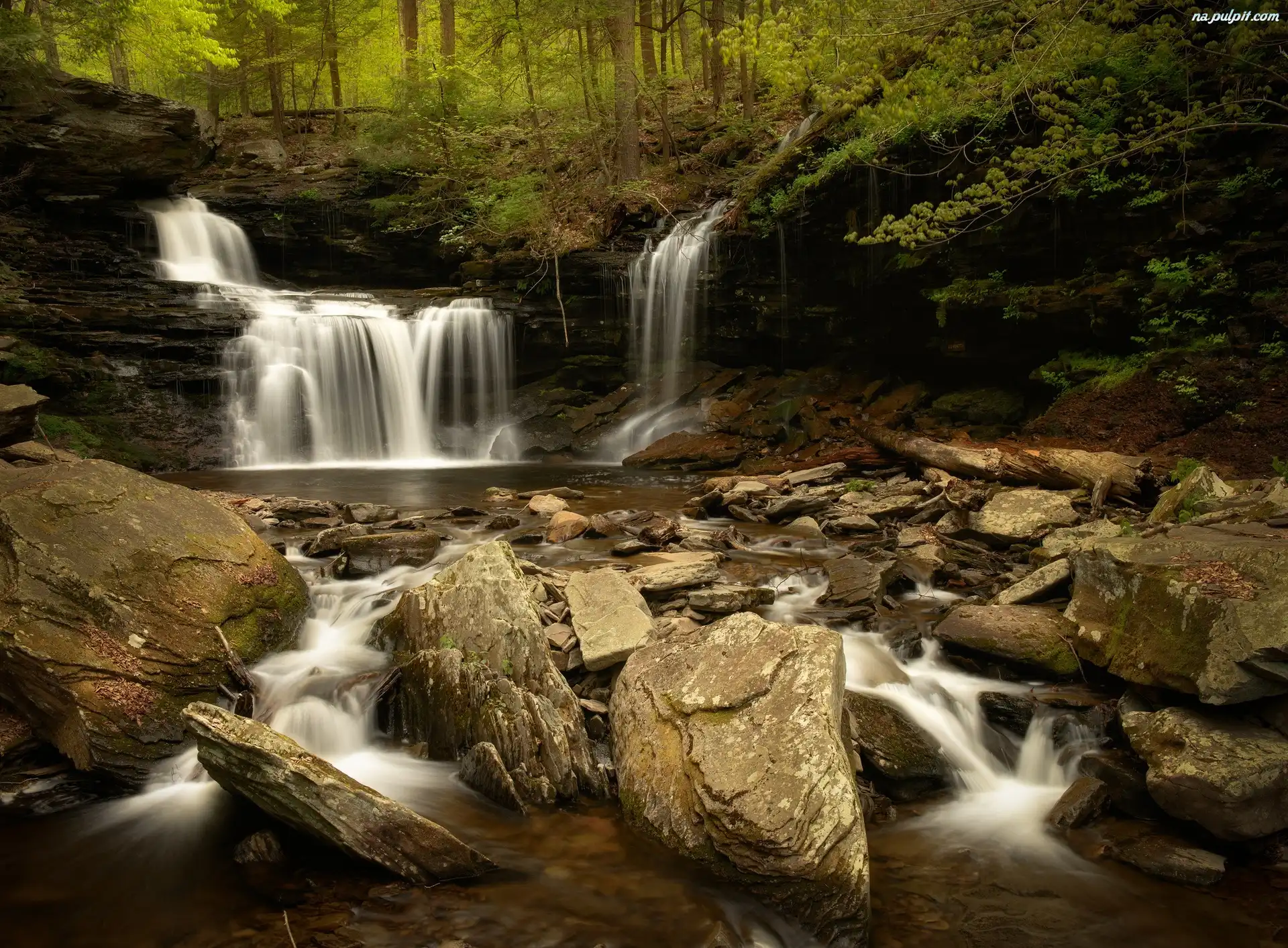 Wodospad, Rzeka, Las, Kamienie Na Pulpit