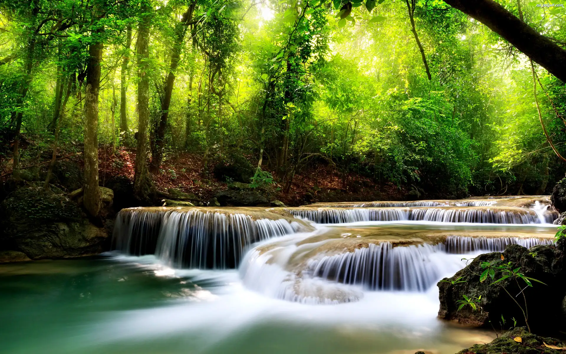 Światło, Las, Wodospad, Przebijające Na Pulpit
