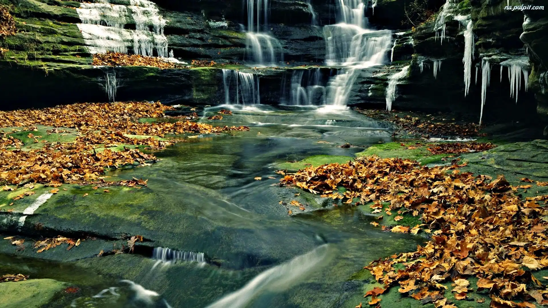 Liście, Wodospad, Opadłe Na Pulpit