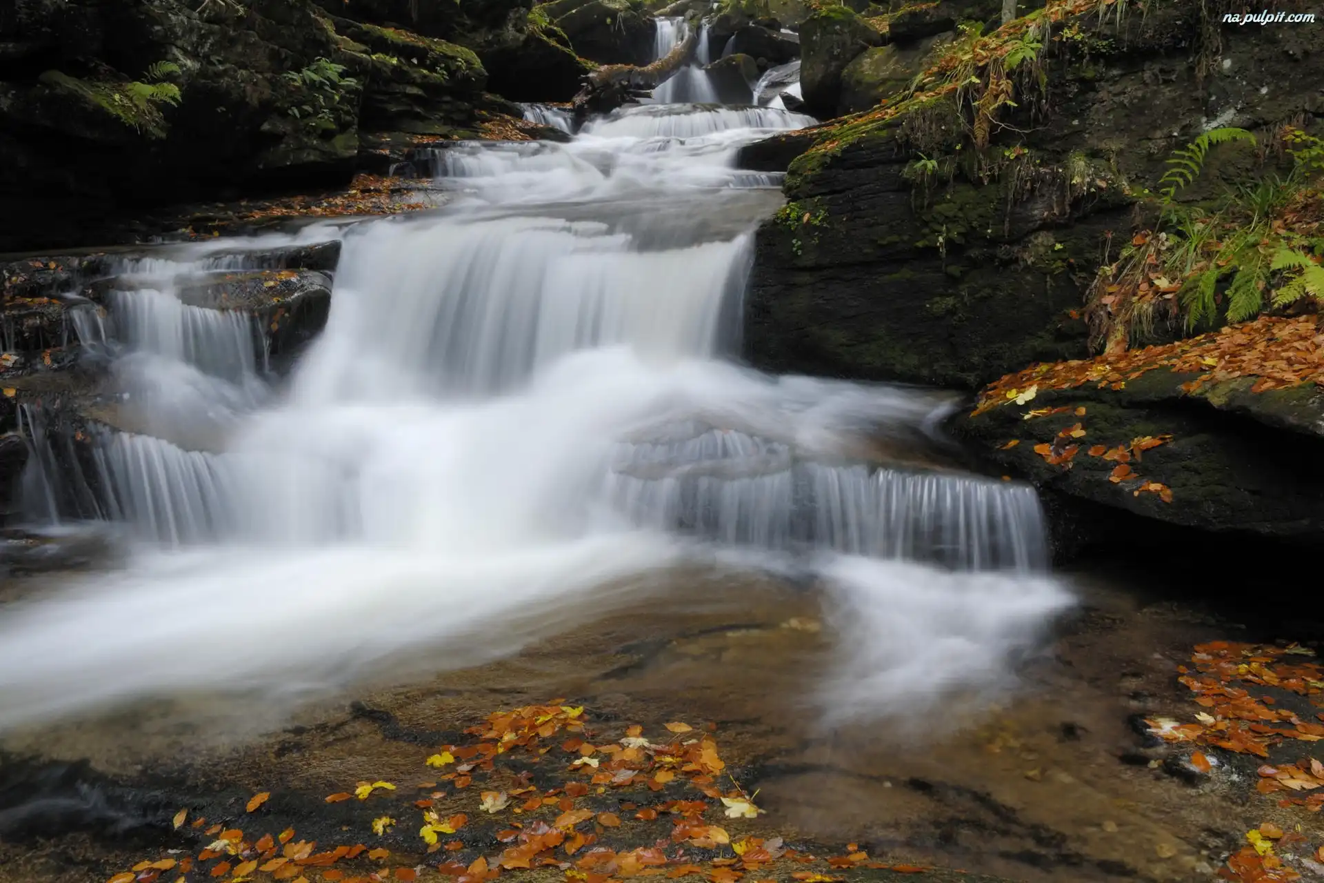 Liście, Wodospad, Skały Na Pulpit