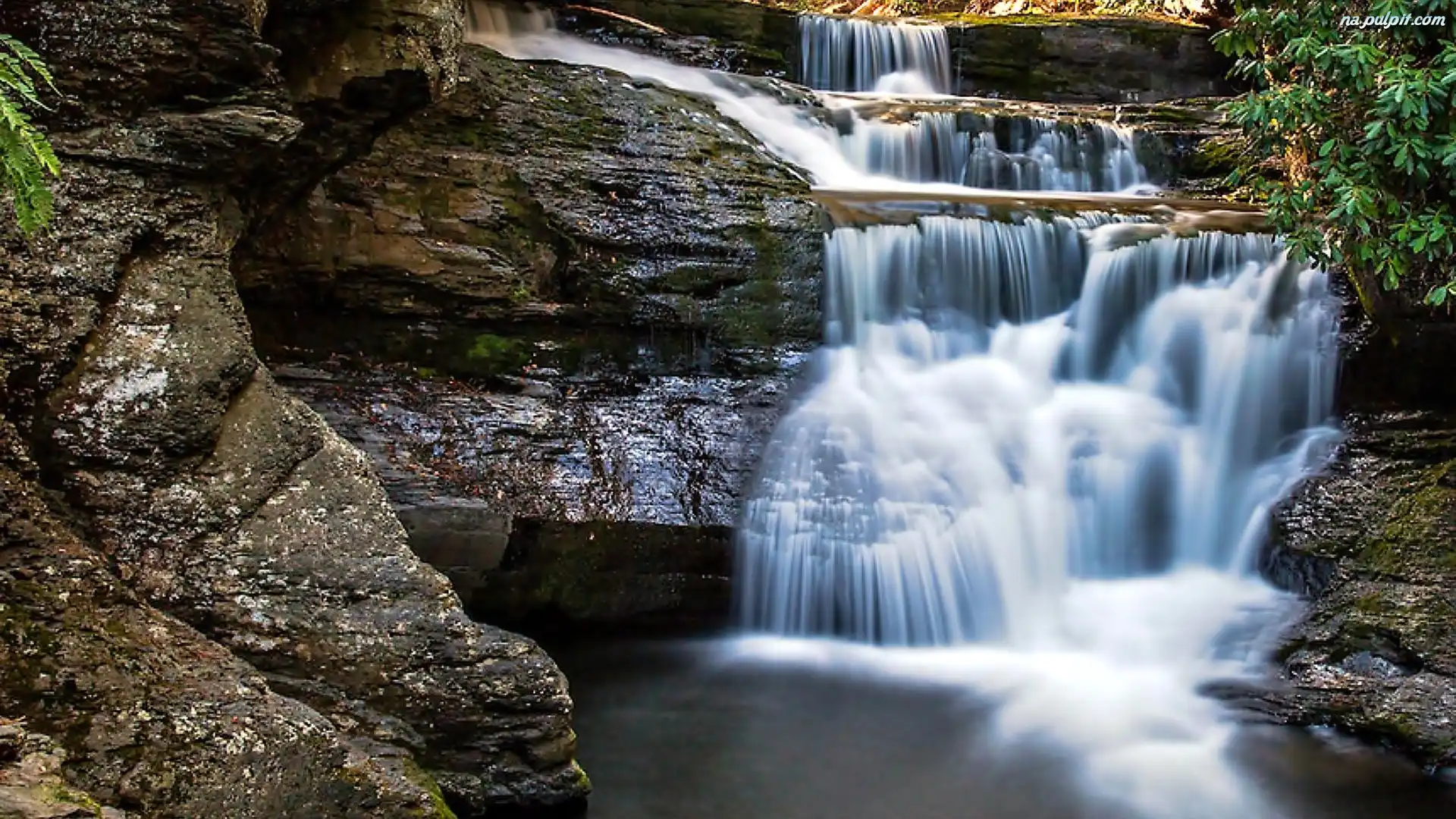 Liście, Wodospad, Skały Na Pulpit