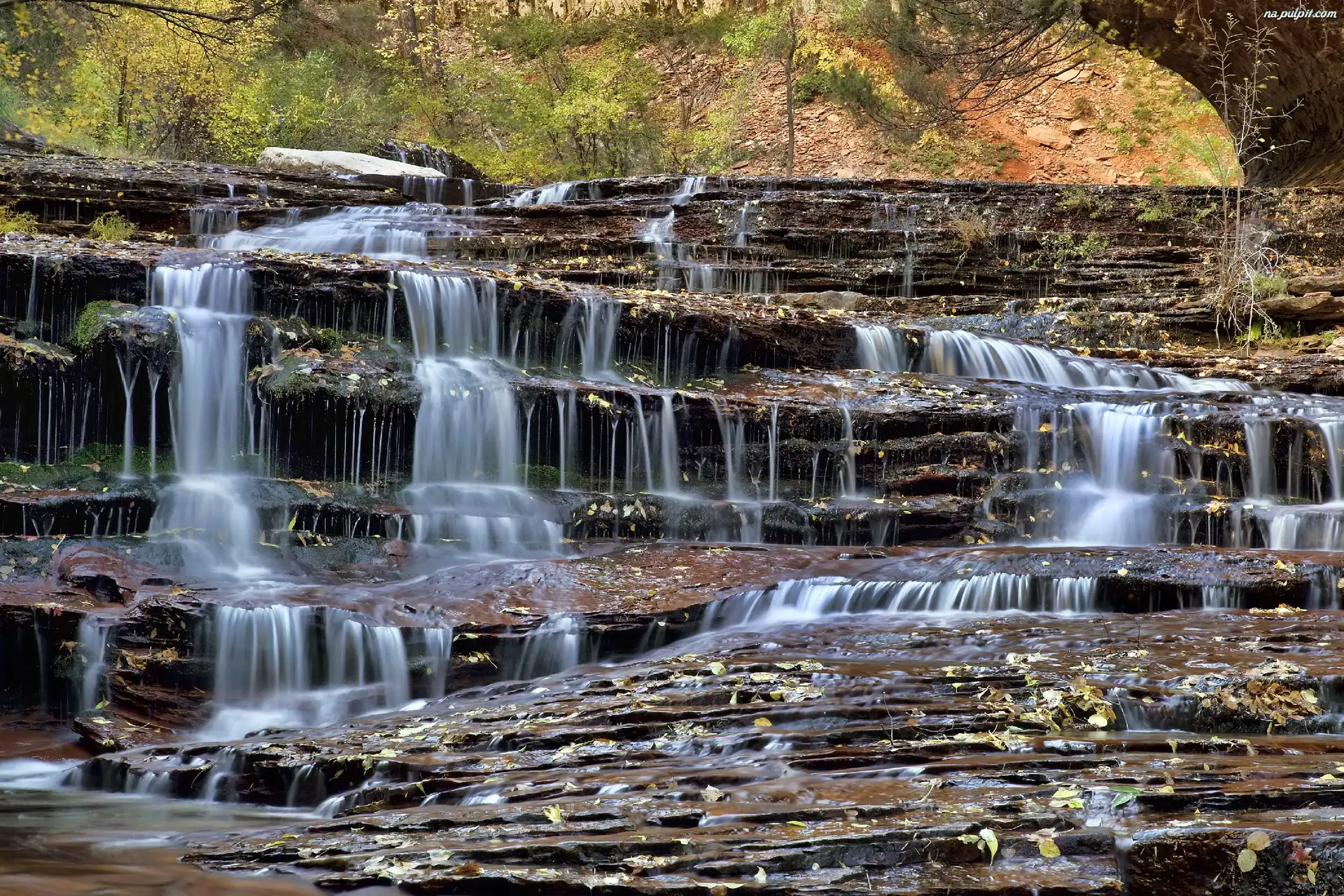 Liście, Wodospad, Skały Na Pulpit