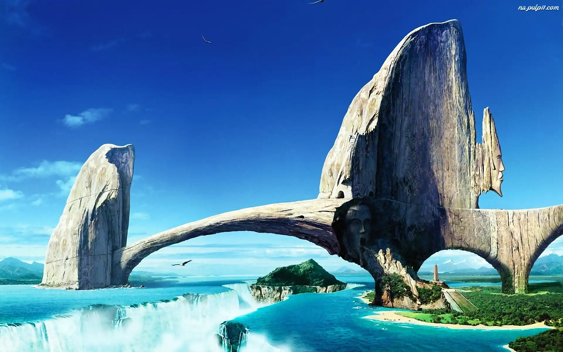 Wodospad, Skała, Świat, Magiczny, Rzeka Na Pulpit