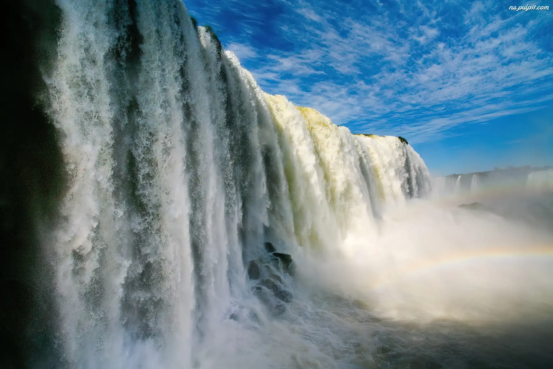 Iguazu, Argentyna, Wodospad Tęcza, Woda, Wodospad, Kamienie Niebo, Wodospad, Piana Iguazu, Brazylia, Wodospad Kamienie, Wodospad, Niebo