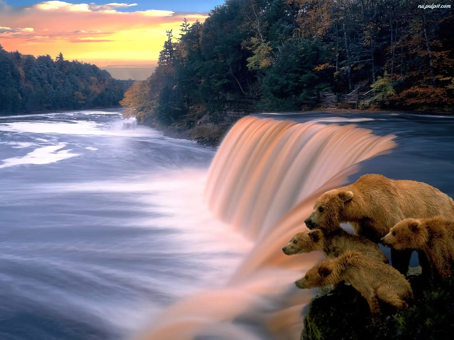 Niedźwiadek, Niedźwiedzica, Biała, Mały Choinka, Niedźwiedzie, Święta Paprocie, Góra, Wodospady Niedźwiedź Wodospad Woda, Horsehoe, Kanadyjska, Niagara, Spieniona Skał, Wodospad, Wśród Kumamoto, Gorogataki, Wodospad, Prefektura Wodospad Słońca, Misie, Białe, Dwa, Zachód Niedźwiedźie Niedźwiedź Piękny Wodospad Niedźwiedź, Drzewo