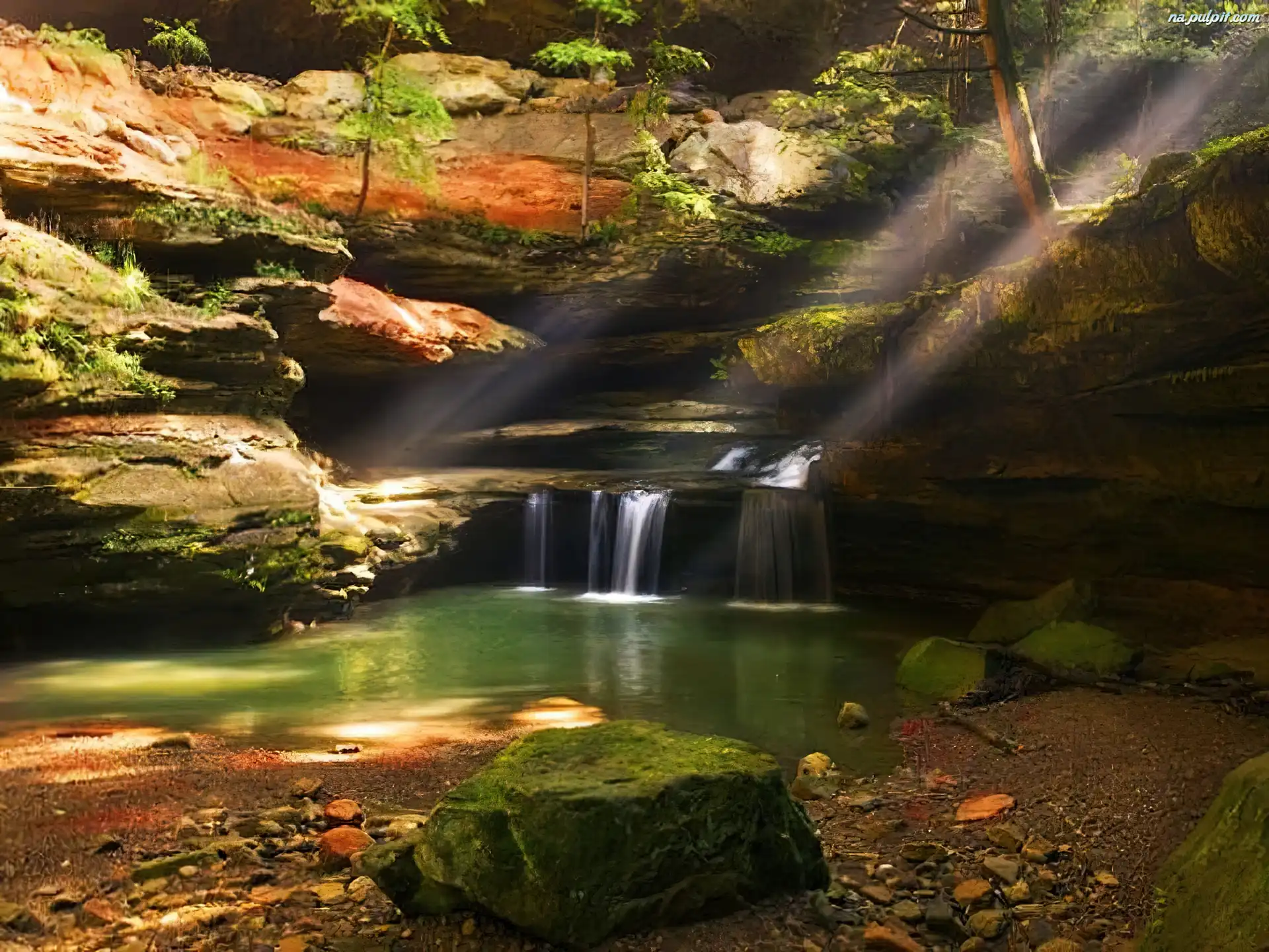 Promienie, Wodospad, Skały Na Pulpit