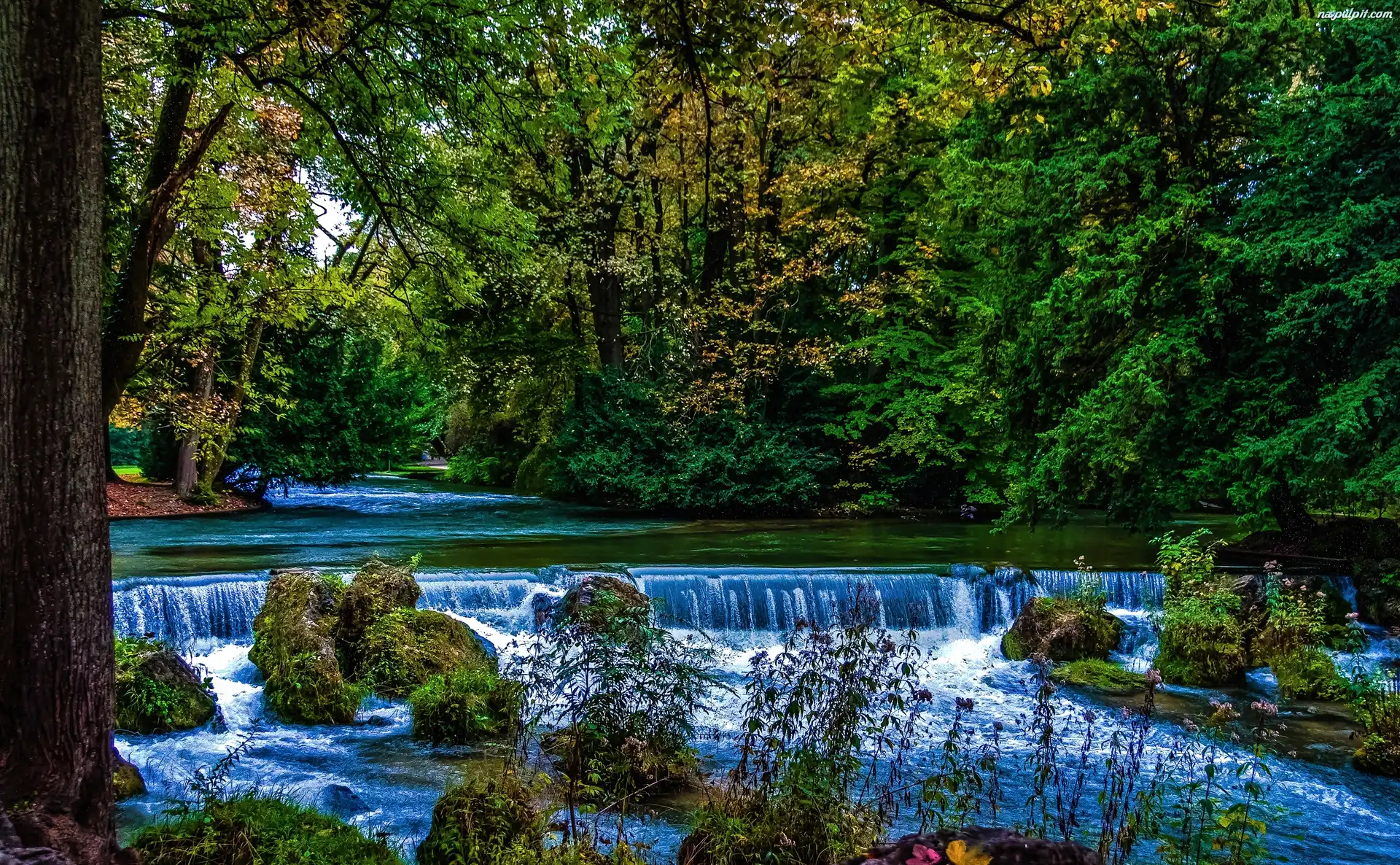Wodospad, Drzewa, Rzeczka, Krzewy Na Pulpit