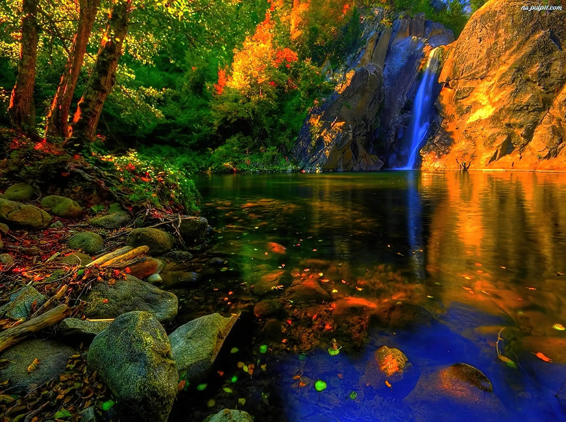 Górskie, Oświetlone, Szczyty Drzewa, Potok, Ścięte Góry, Zachód Słońca, Rzeka Wodospad, drzewa Rzeka, Góry Woda, Wodospad, Spieniona Kamienie, Wodospad Słońca, Rzeka, Trawa, Oszroniona, Zachód Rzeka Yellowstone, Wodospad, Park Wodospad Wodospad, Skały Krzew, Góry, Wodospad Chorwacja, Park Narodowy Plitvice
