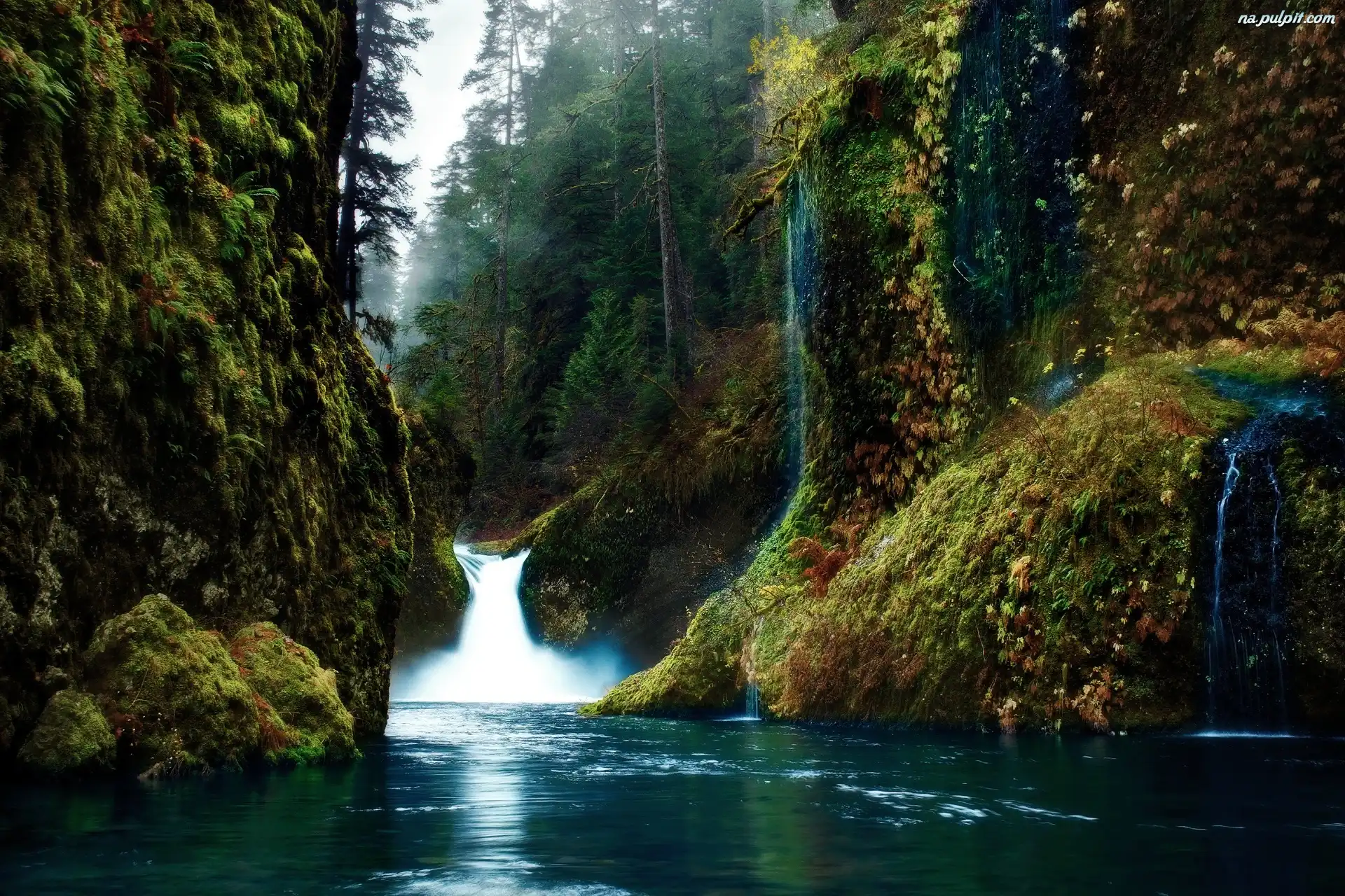 Górskie, Oświetlone, Szczyty Drzewa, Potok, Ścięte Góry, Zachód Słońca, Rzeka Wodospad, drzewa Rzeka, Góry Woda, Wodospad, Spieniona Kamienie, Wodospad Słońca, Rzeka, Trawa, Oszroniona, Zachód Rzeka Yellowstone, Wodospad, Park Wodospad Wodospad, Skały Krzew, Góry, Wodospad Chorwacja, Park Narodowy Plitvice