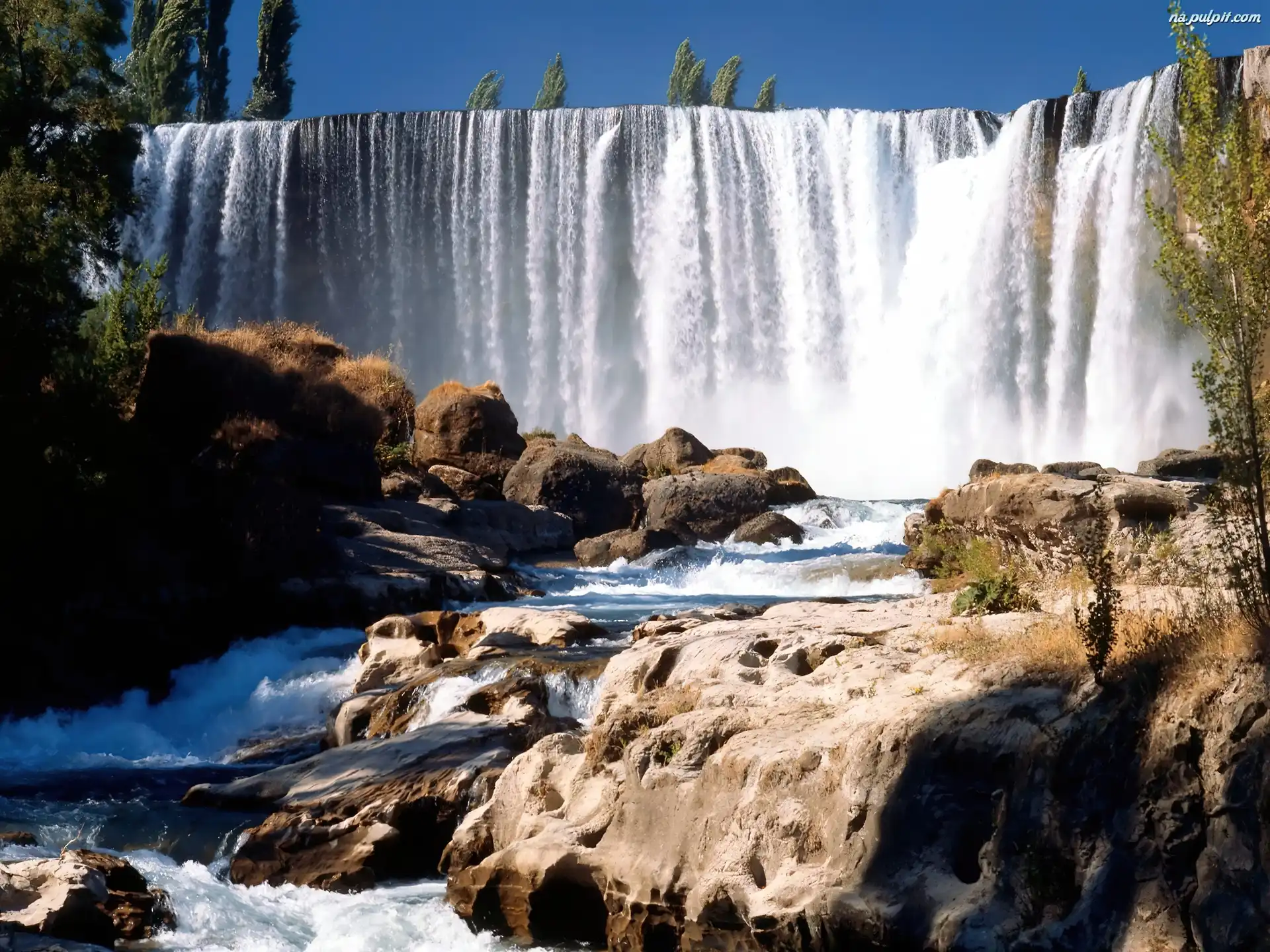 Rzeka, Wodospad, Skały Na Pulpit