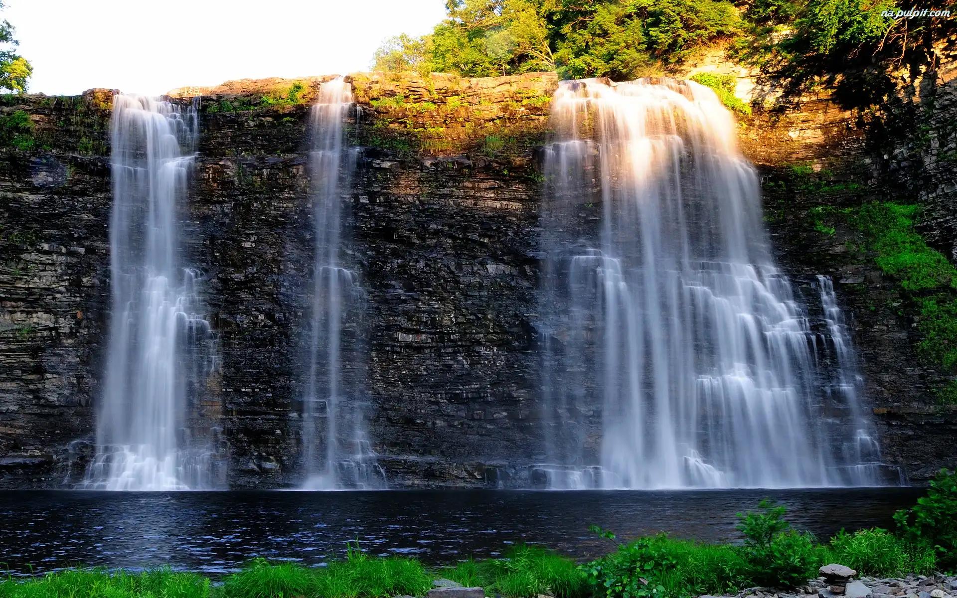 Światło, Rzeka, Wodospad, Przebijające Na Pulpit