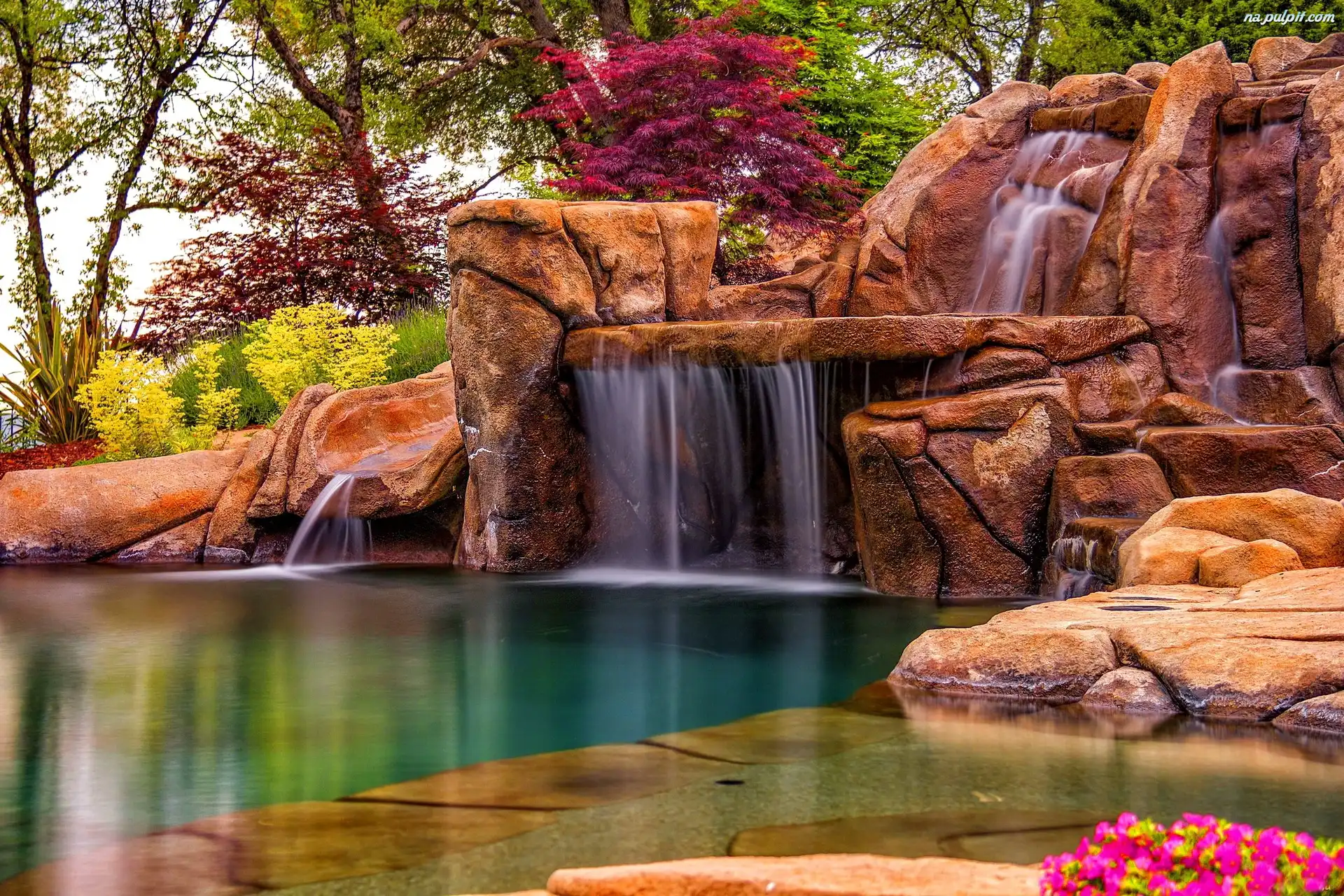 Skały, Wodospad, Drzewa Na Pulpit