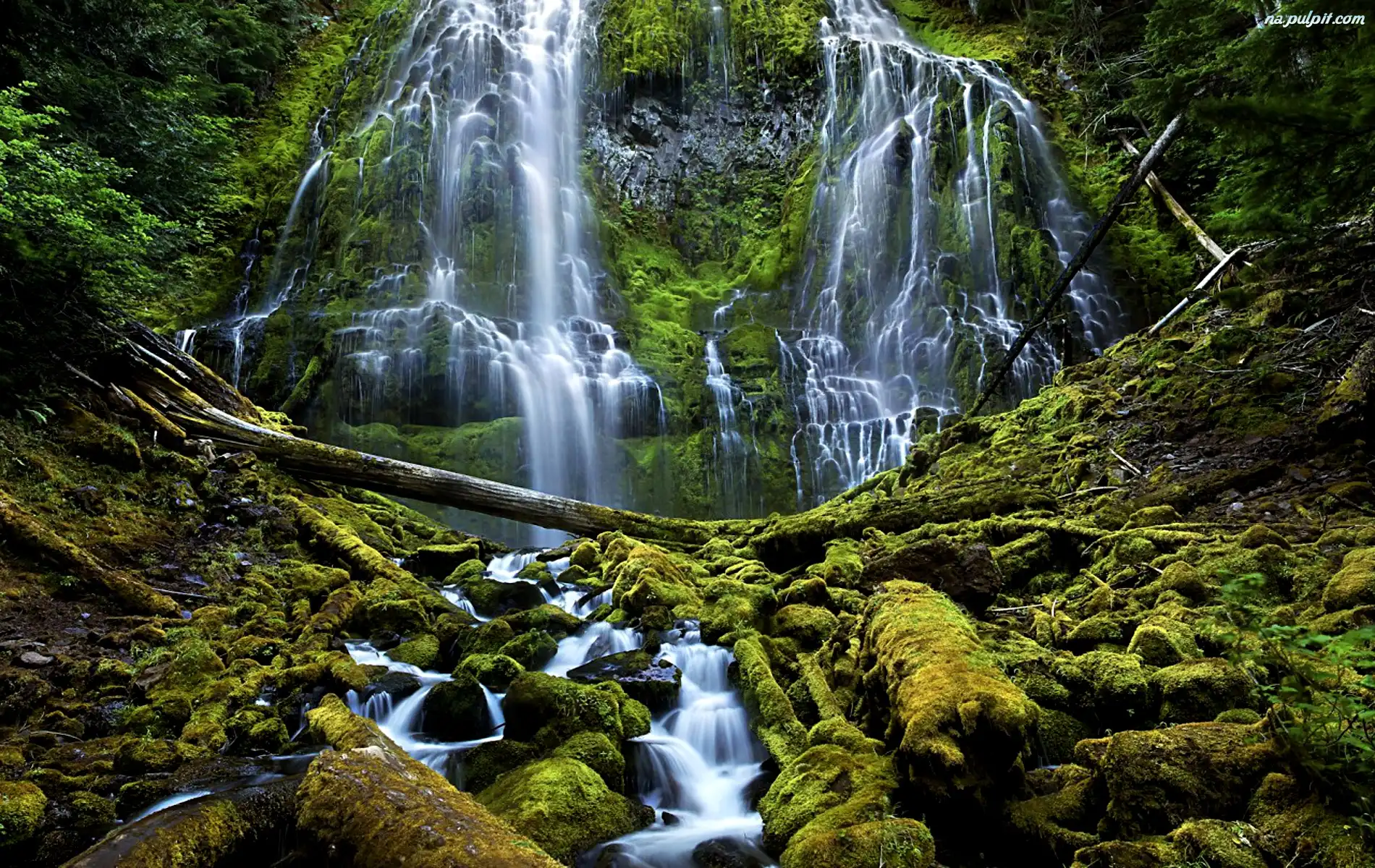 Zieleń, Wodospad, Mech Na Pulpit