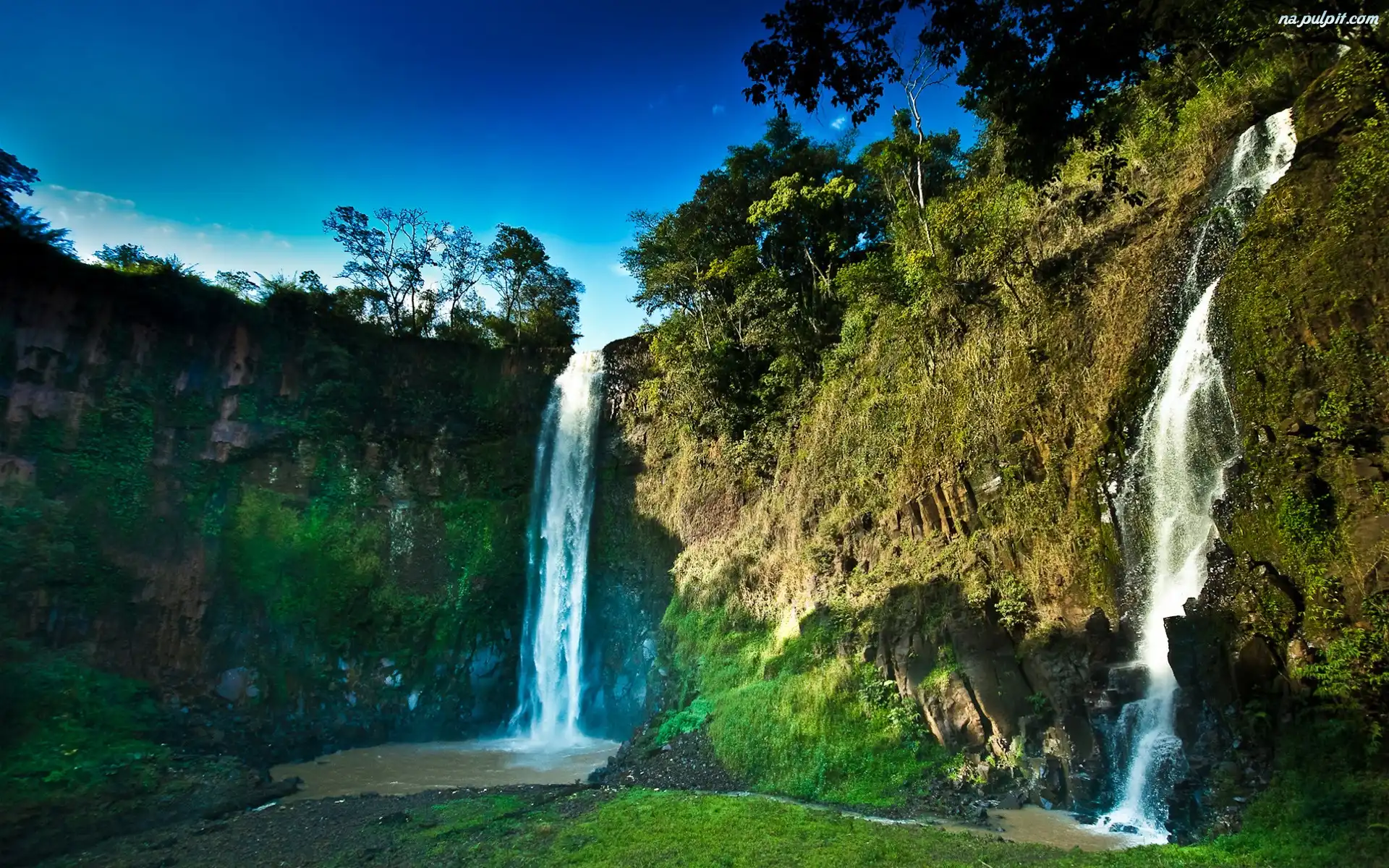 Drzewa, Wodospady, Skały Na Pulpit