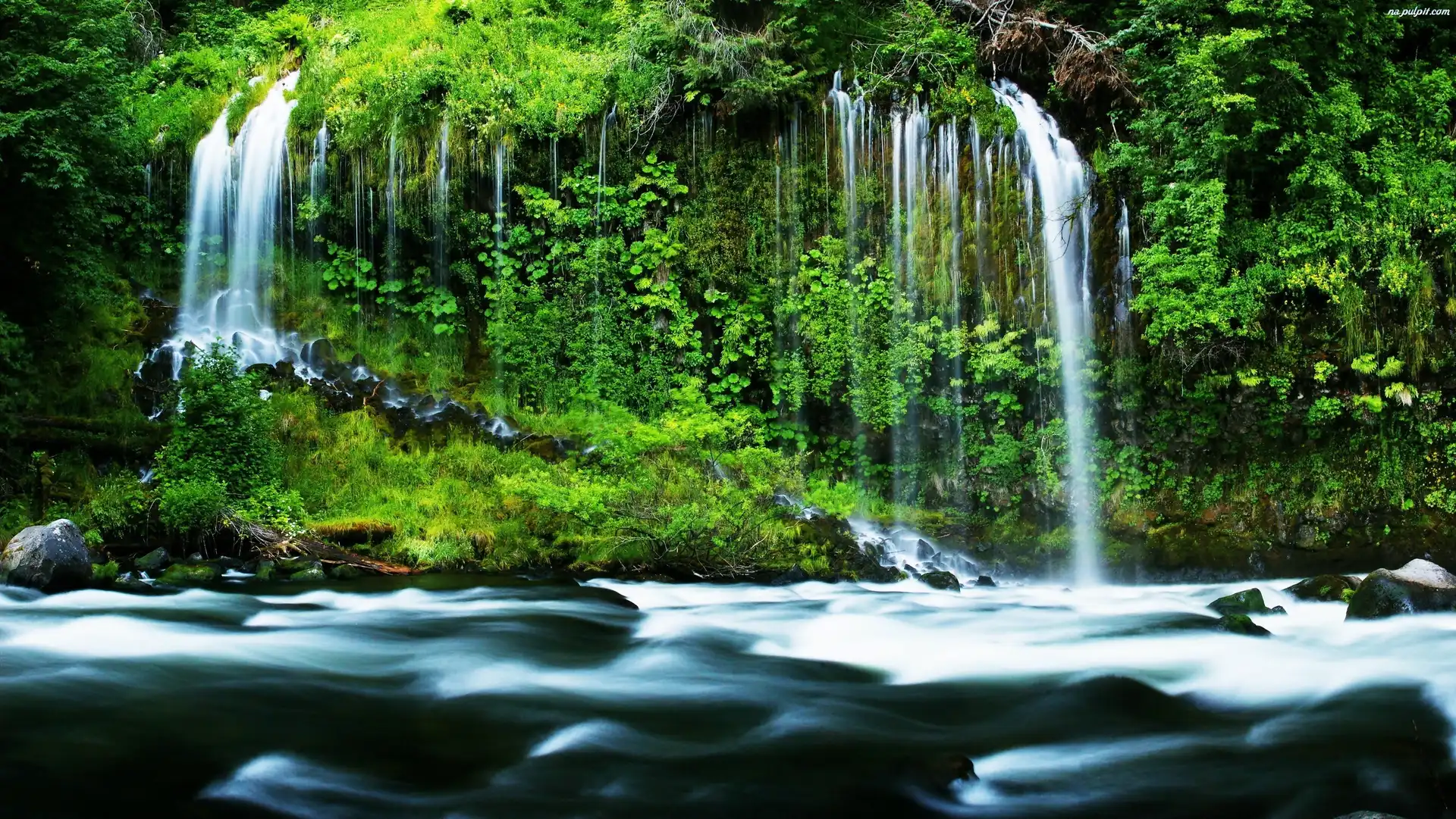 Wodospady, Rzeka, Las, Zieleń Na Pulpit