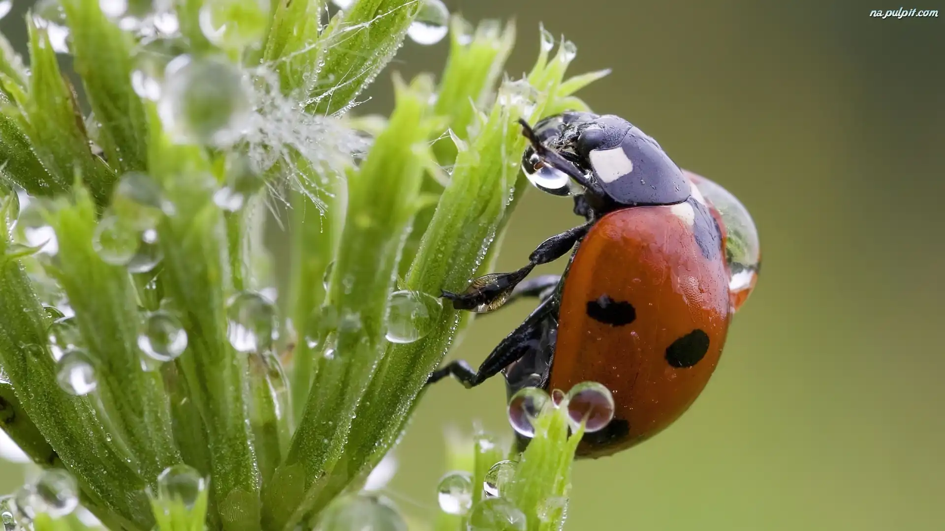Wody, Roślina, Biedronka, Krople Na Pulpit