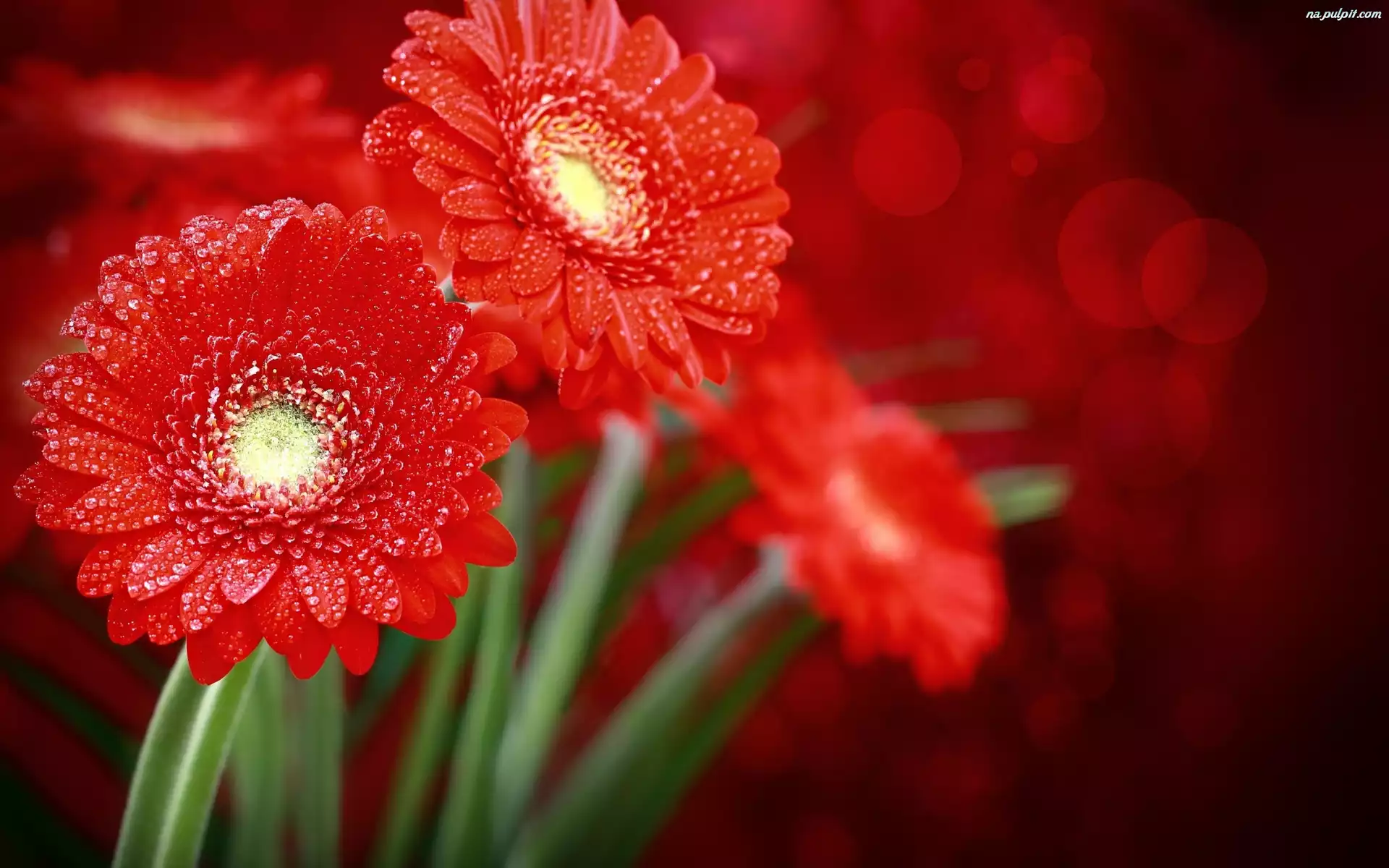 Wody, Gerbery, Czerwone, Krople Na Pulpit
