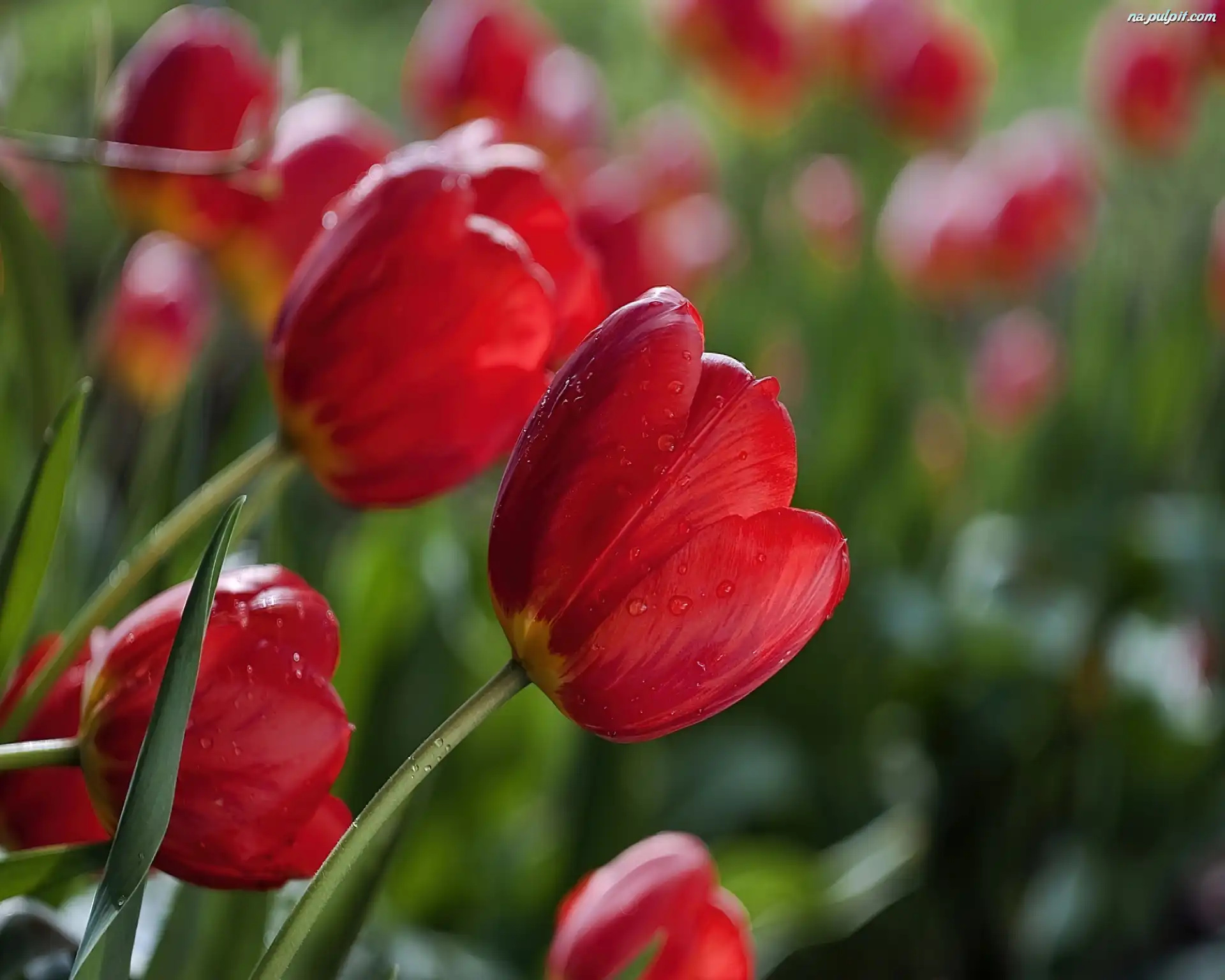 Wody, Tulipany, Czerwone, Krople Na Pulpit