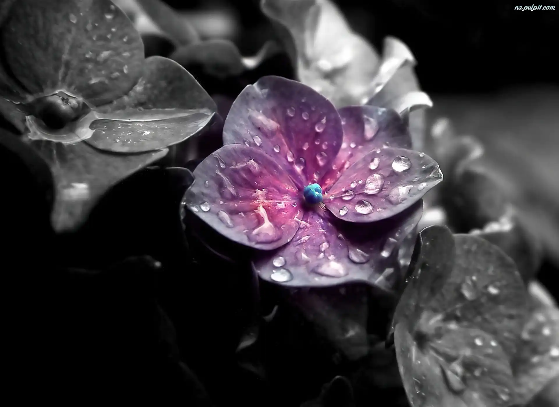 Wody, Kwiat, Fioletowy, Krople Na Pulpit