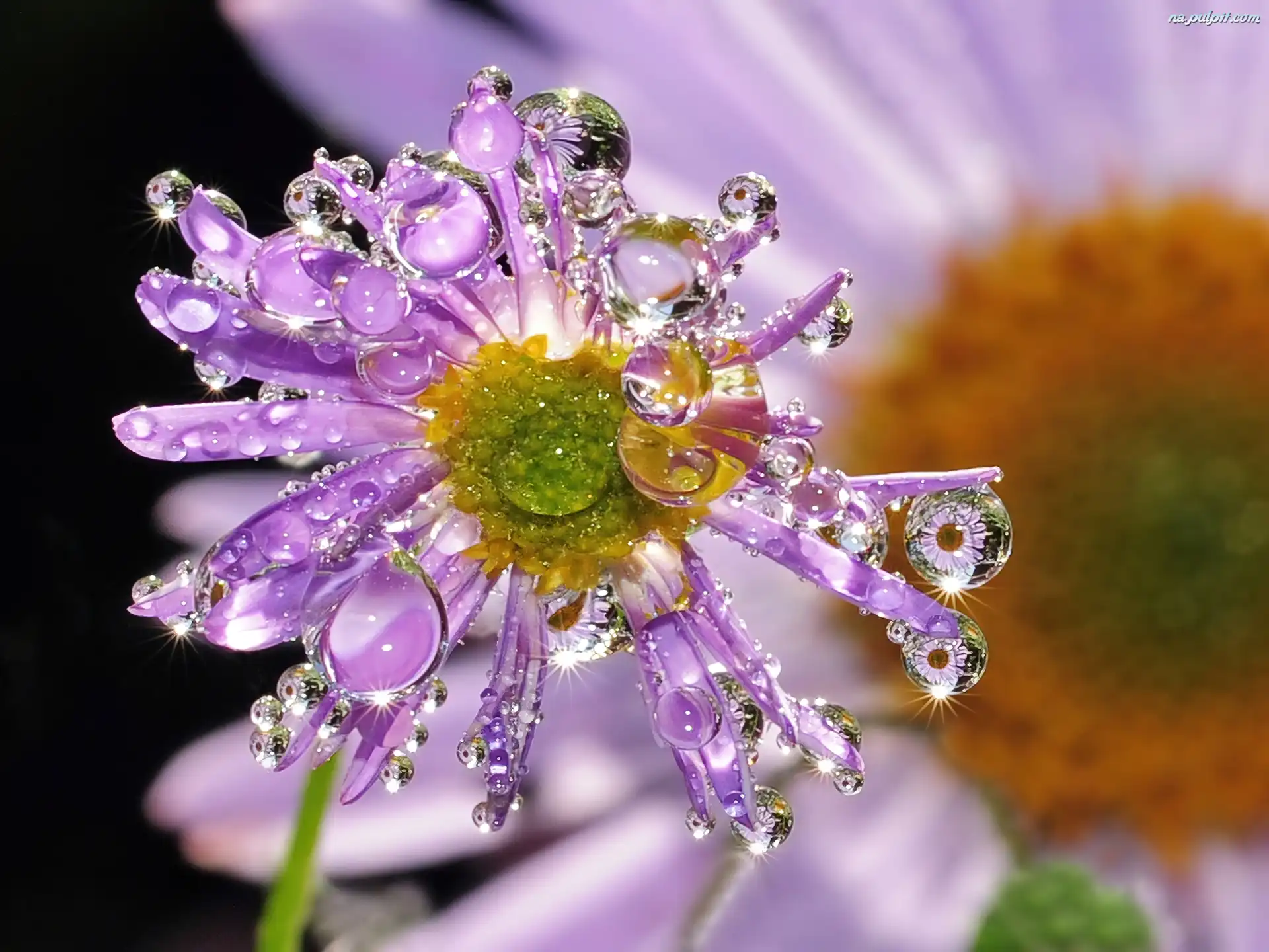 Wody, Kwiat, Fioletowy, Krople Na Pulpit