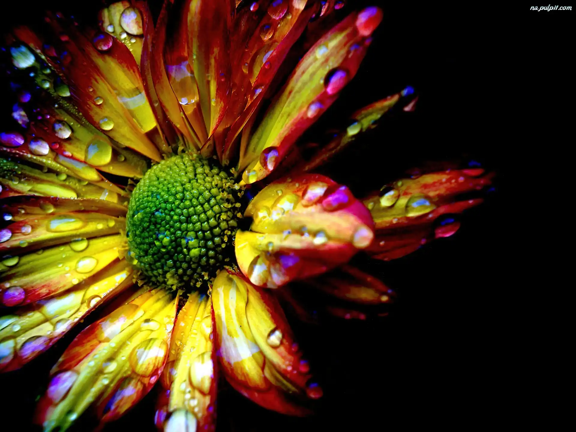 Wody, Kwiat, Kolorowy, Krople Na Pulpit