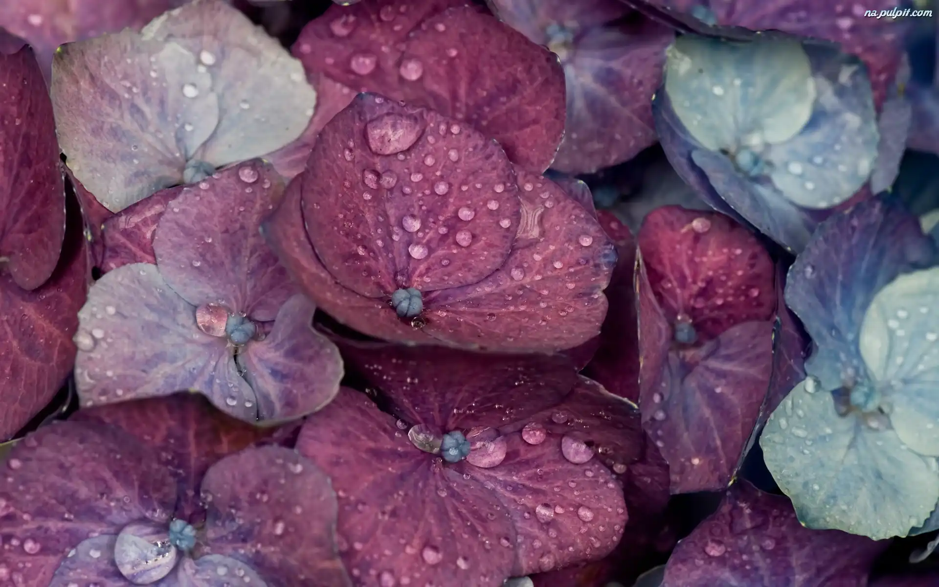 Wody, Hortensji, Kwiaty, Krople Na Pulpit