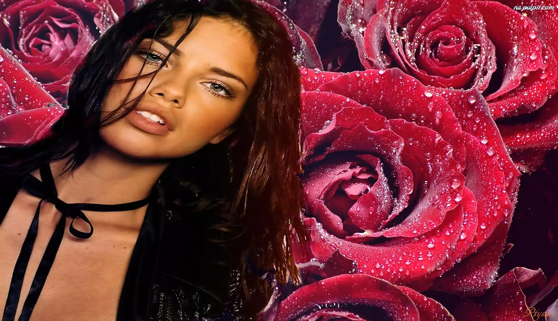 Wody, Róże, Czerwone, Adriana Lima, Krople Na Pulpit