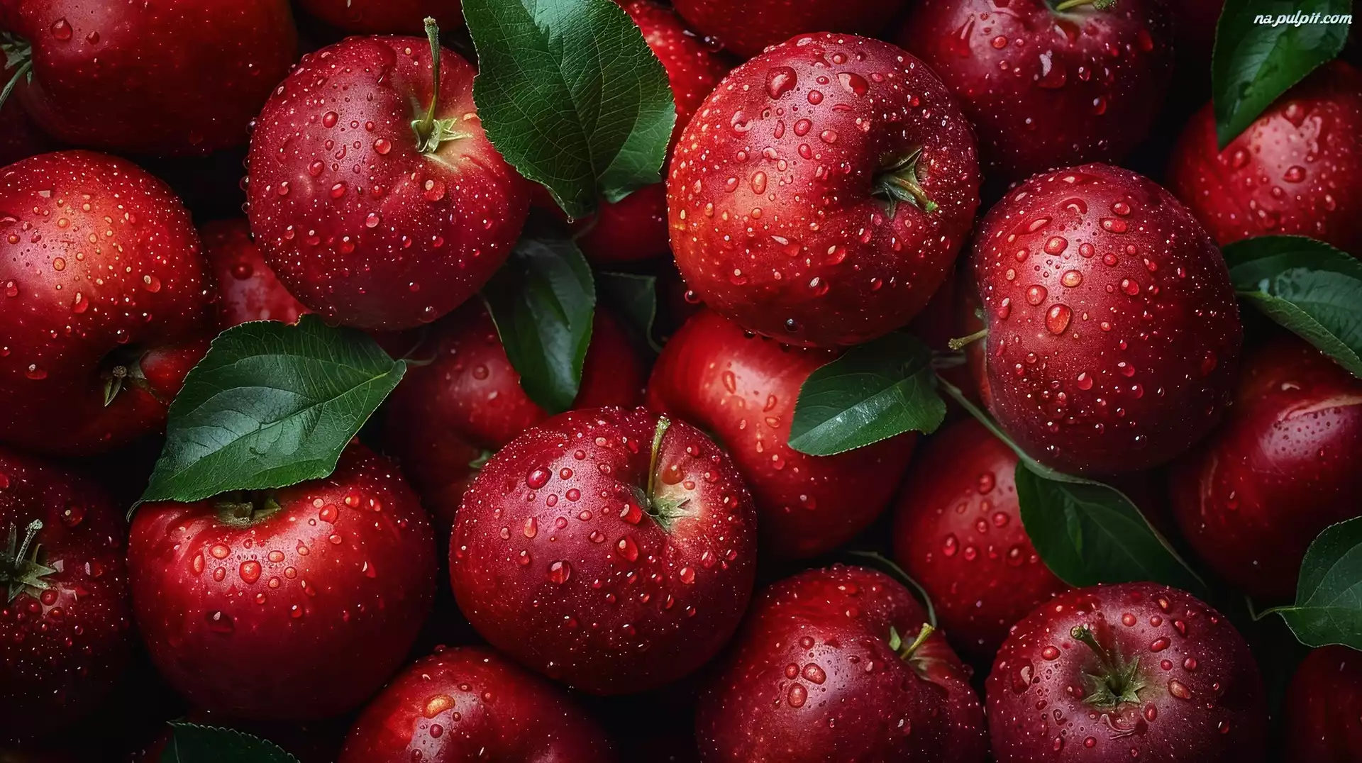 Zielone, Czerwone, Krople, Wody, Jabłka, Listki Na Pulpit