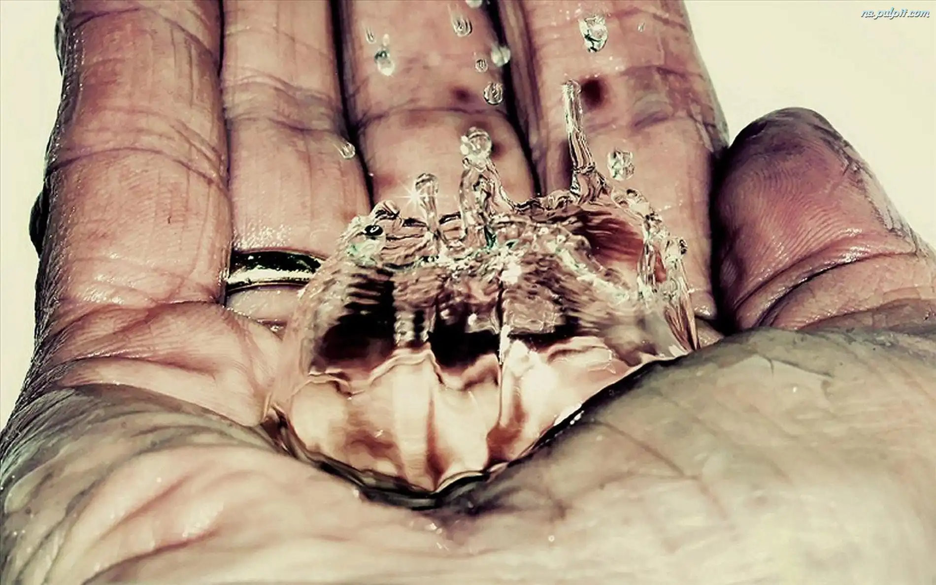 Wody, Dłoń, Męska, Kropla Na Pulpit