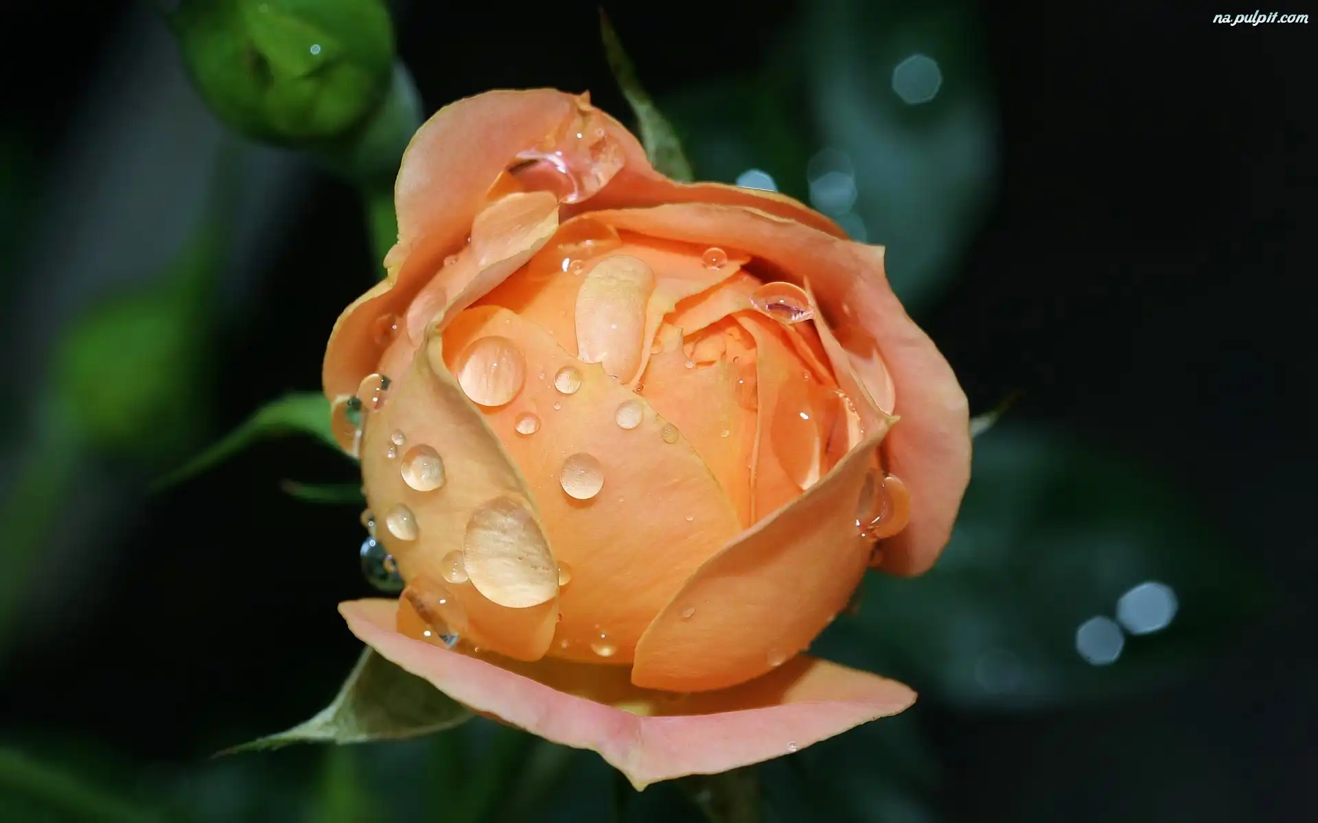 Wody, Róży, Herbacianej, Pąk, Krople Na Pulpit