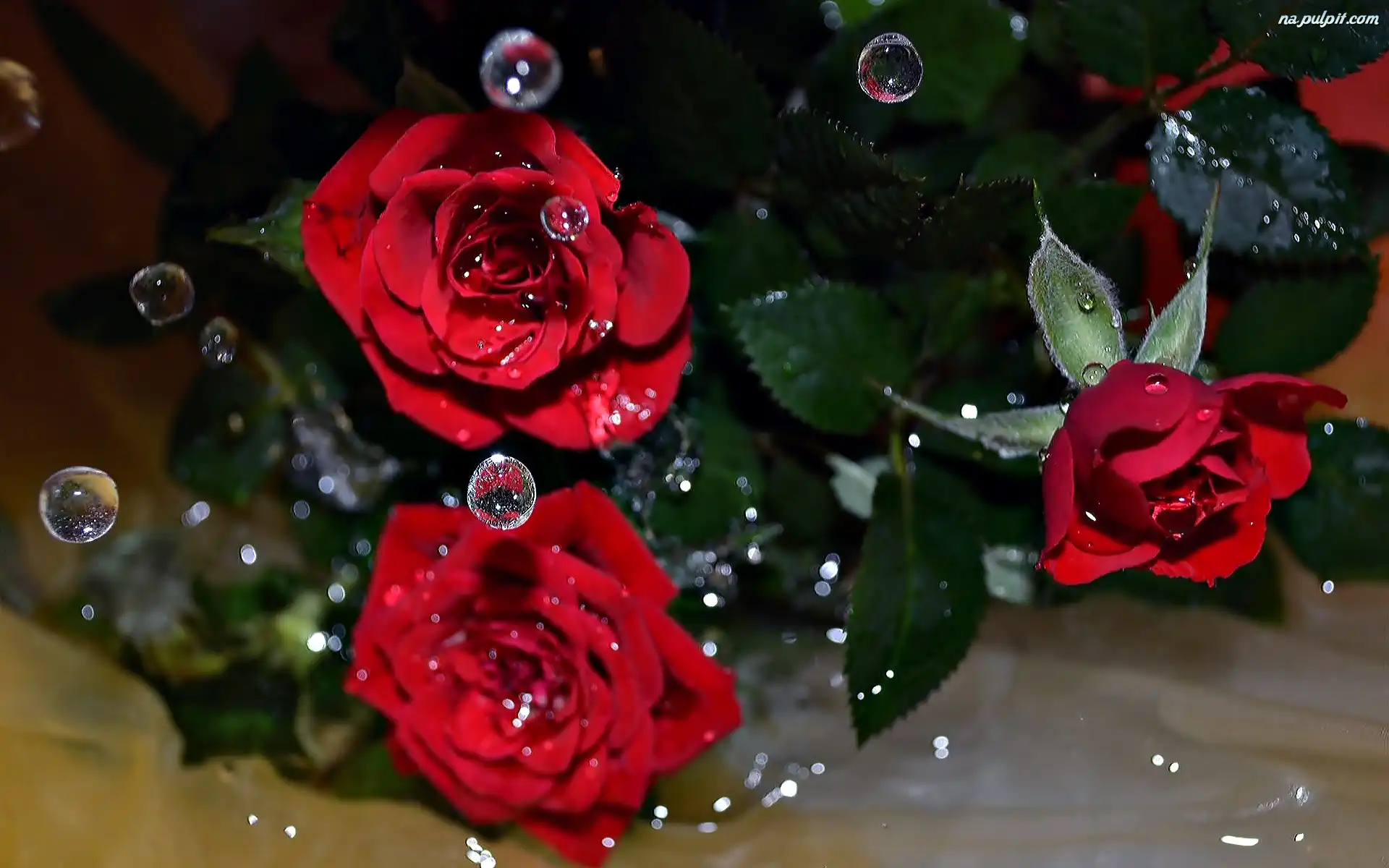 Wody, Róże, Czerwone, Trzy, Krople Na Pulpit