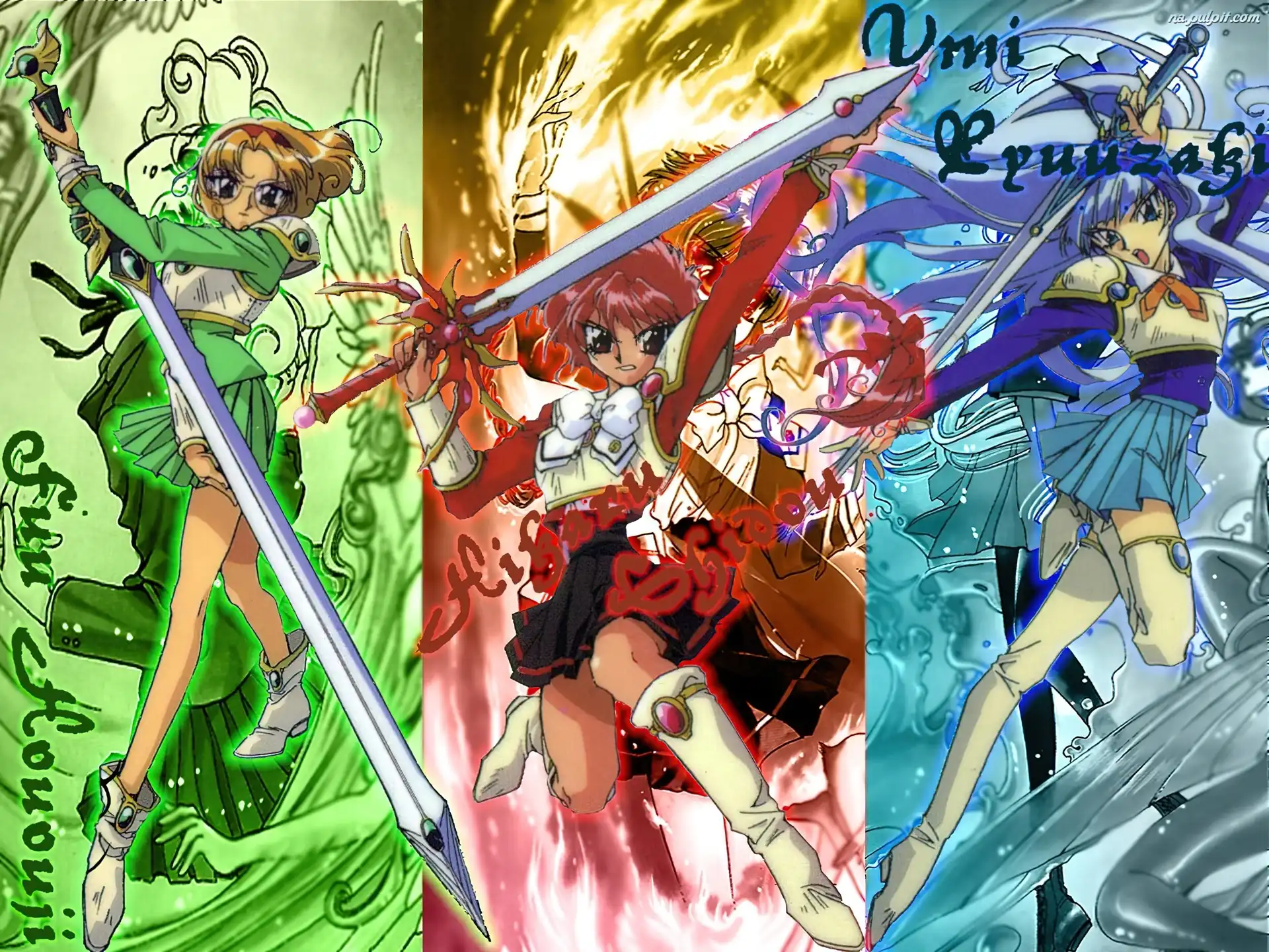 Śpiące, Wojowniczki Magic Knight Rayearht, Przyjaciółki Magic Knight Rayearth, Owoce, Postacie, Kolory Delfin, Hikaru, Morze Woda, Yumi, Rycerz pluszak, Magic Knight Rayearth, kobieta dziewczyna, Magic Knight Rayearth, sukienka Zagato Zdjęcie, Hikaru, Fuu, Umi Rayearth, Legendarna, Maszyna ludzie, Magic Knight Rayearth, kobiety Umi, Miecz magia, Magic Knight Rayearth, kobiety Hikaru, Nova
