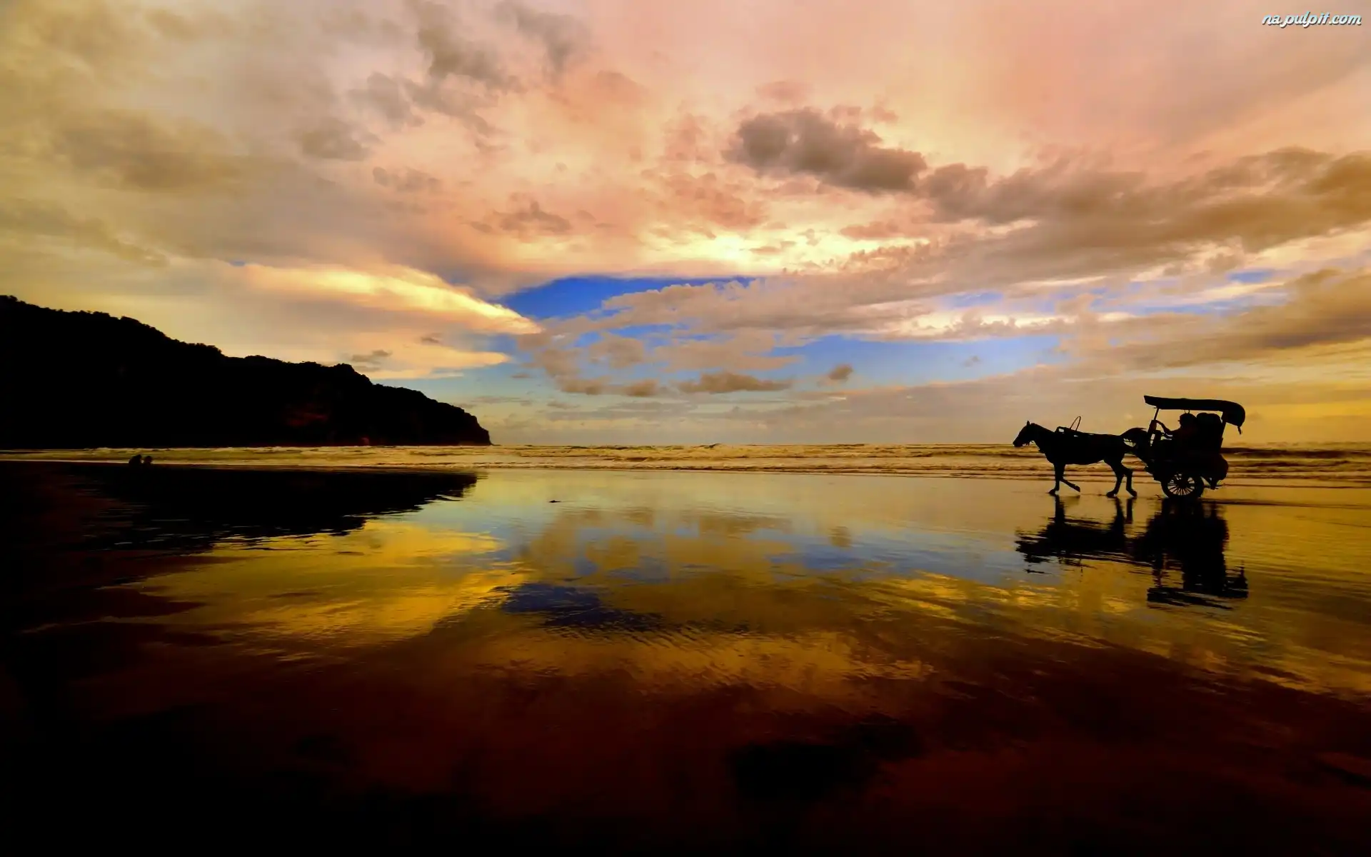 Wózek, Słońca, Zachód, Plaża, Koń Na Pulpit