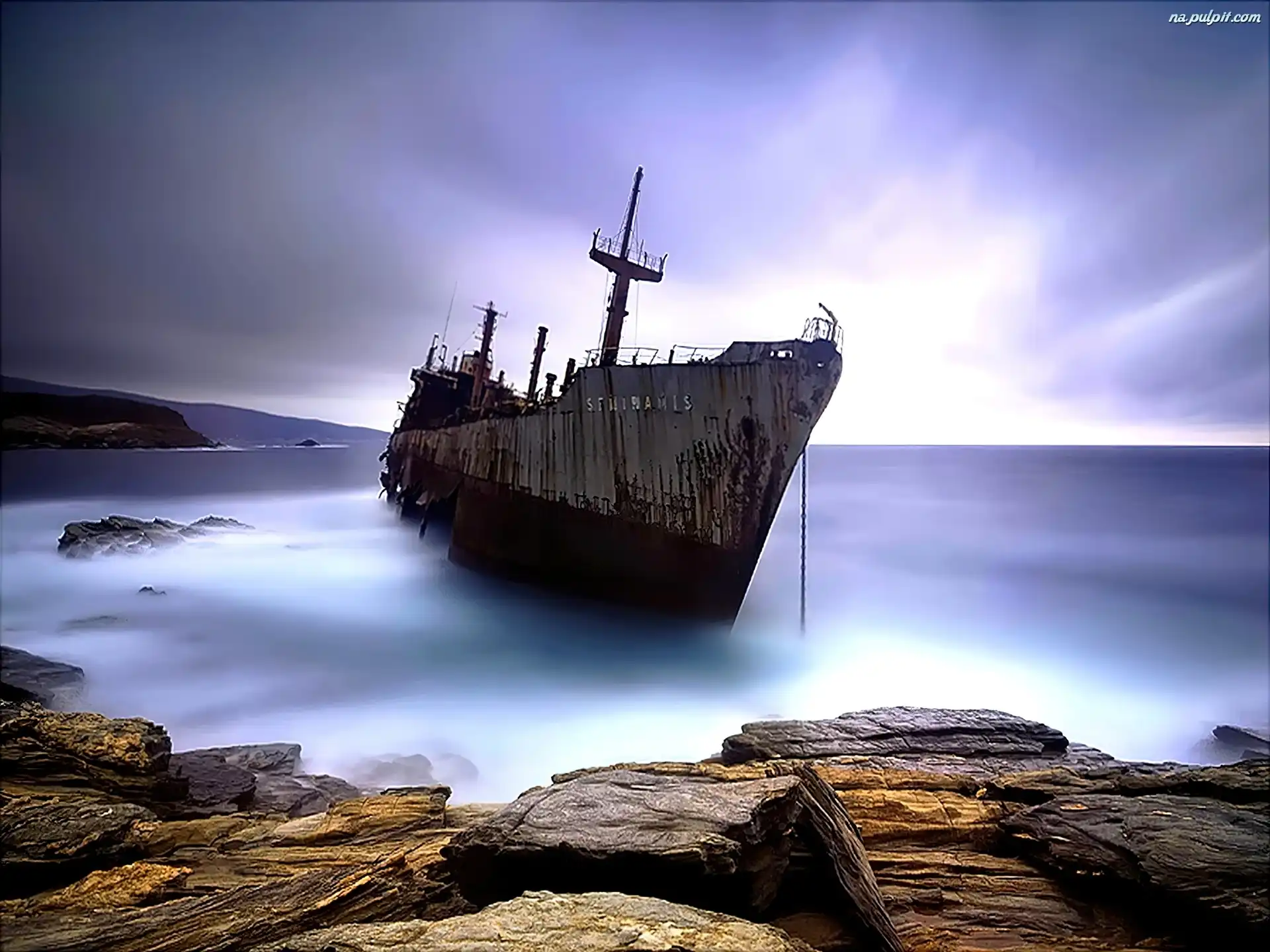 Skały, Wrak, Statku Na Pulpit