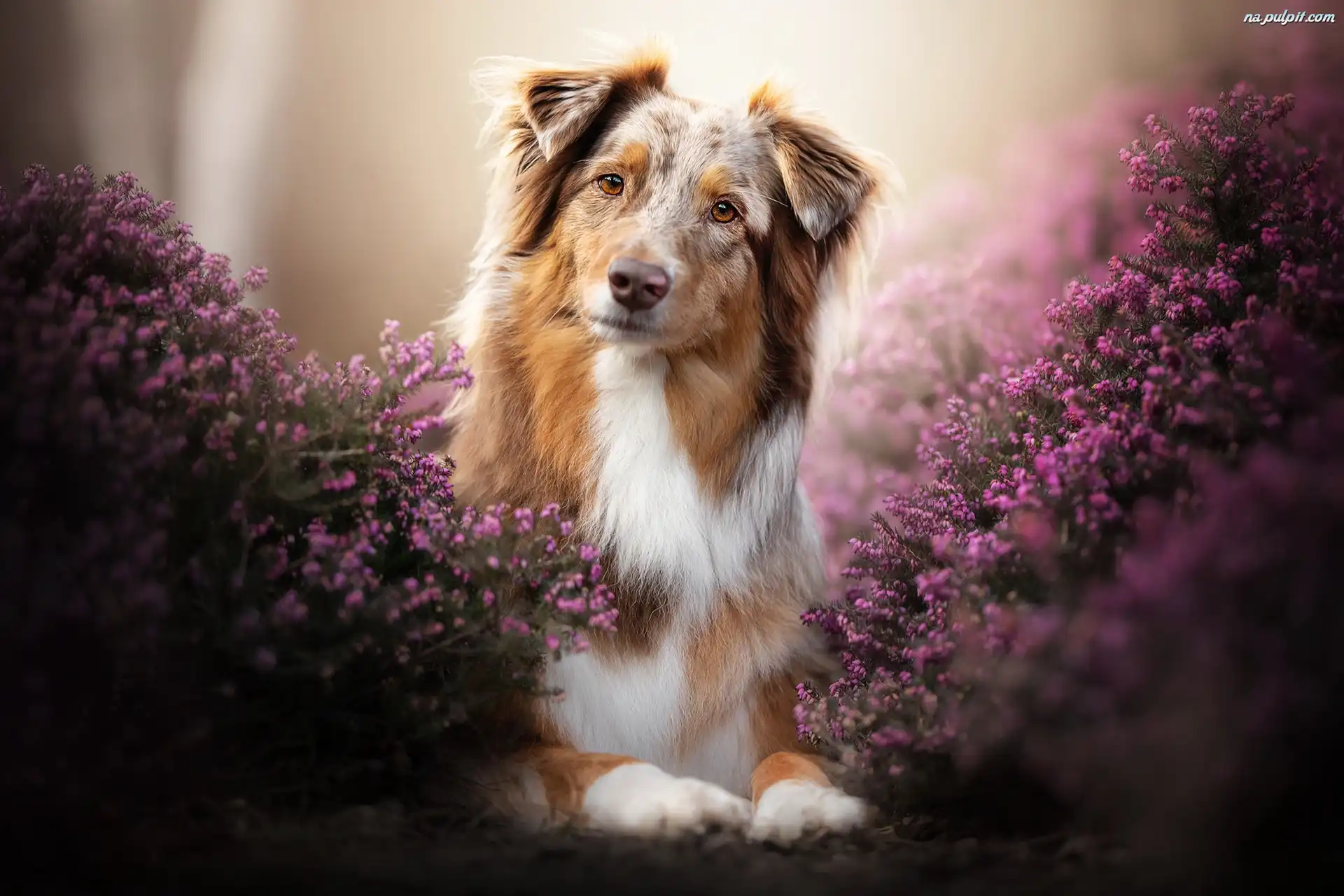 Wrzosy, Brązowo-biały, Pies, Owczarek australijski Na Pulpit