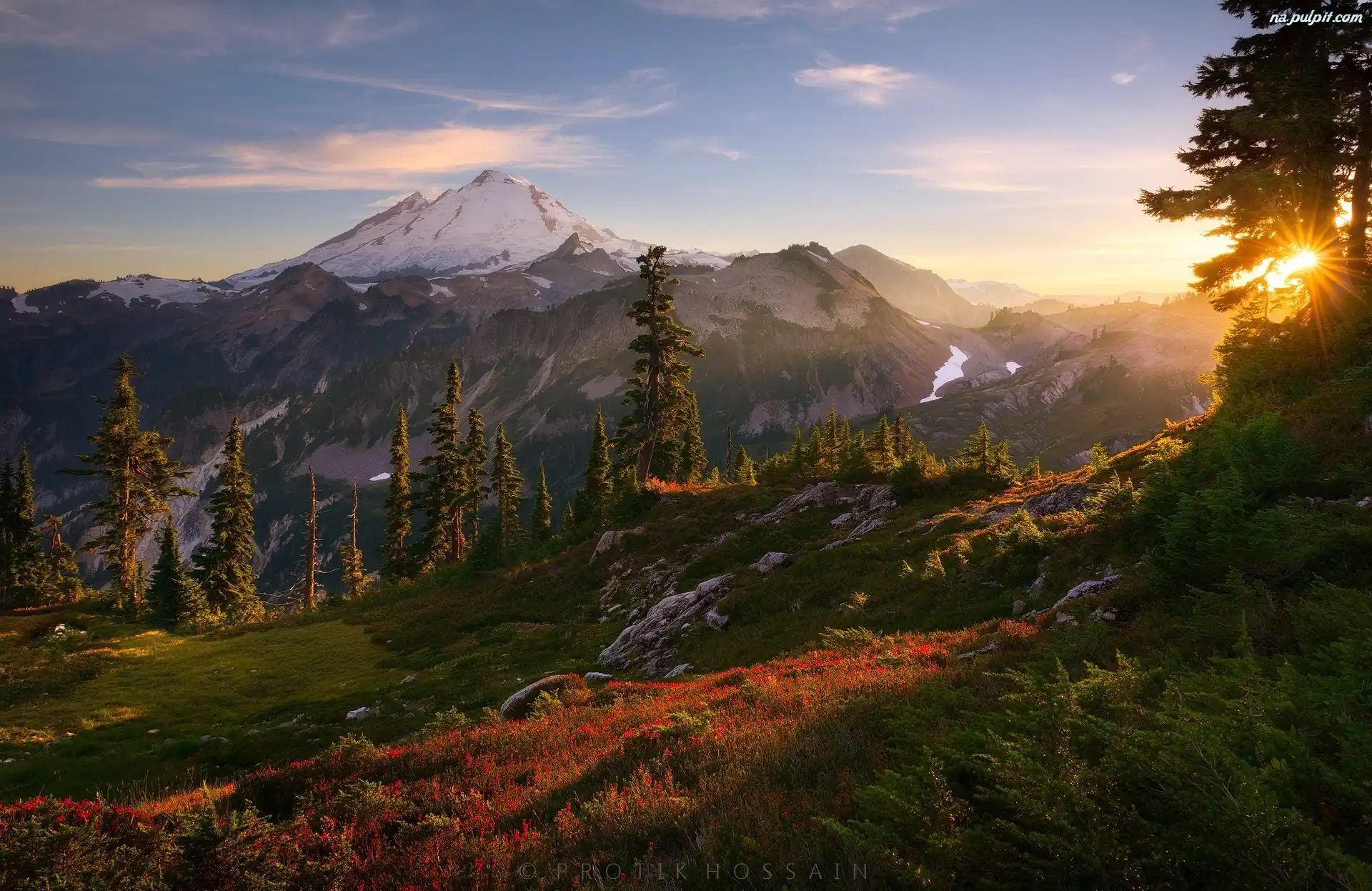 Wschód słońca, Góry, Las