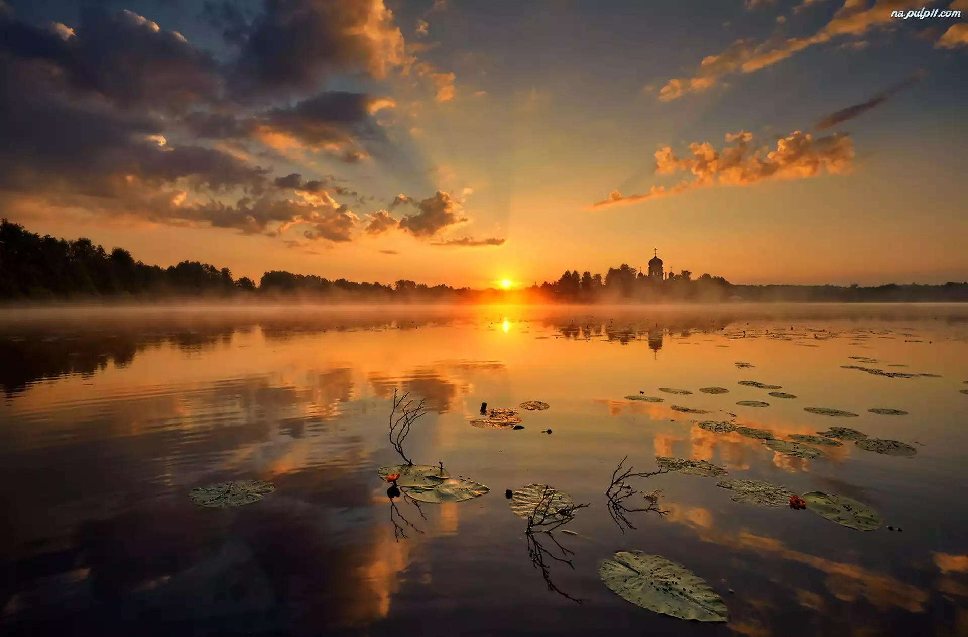 Wschód słońca, Jezioro, Mgła Na Pulpit