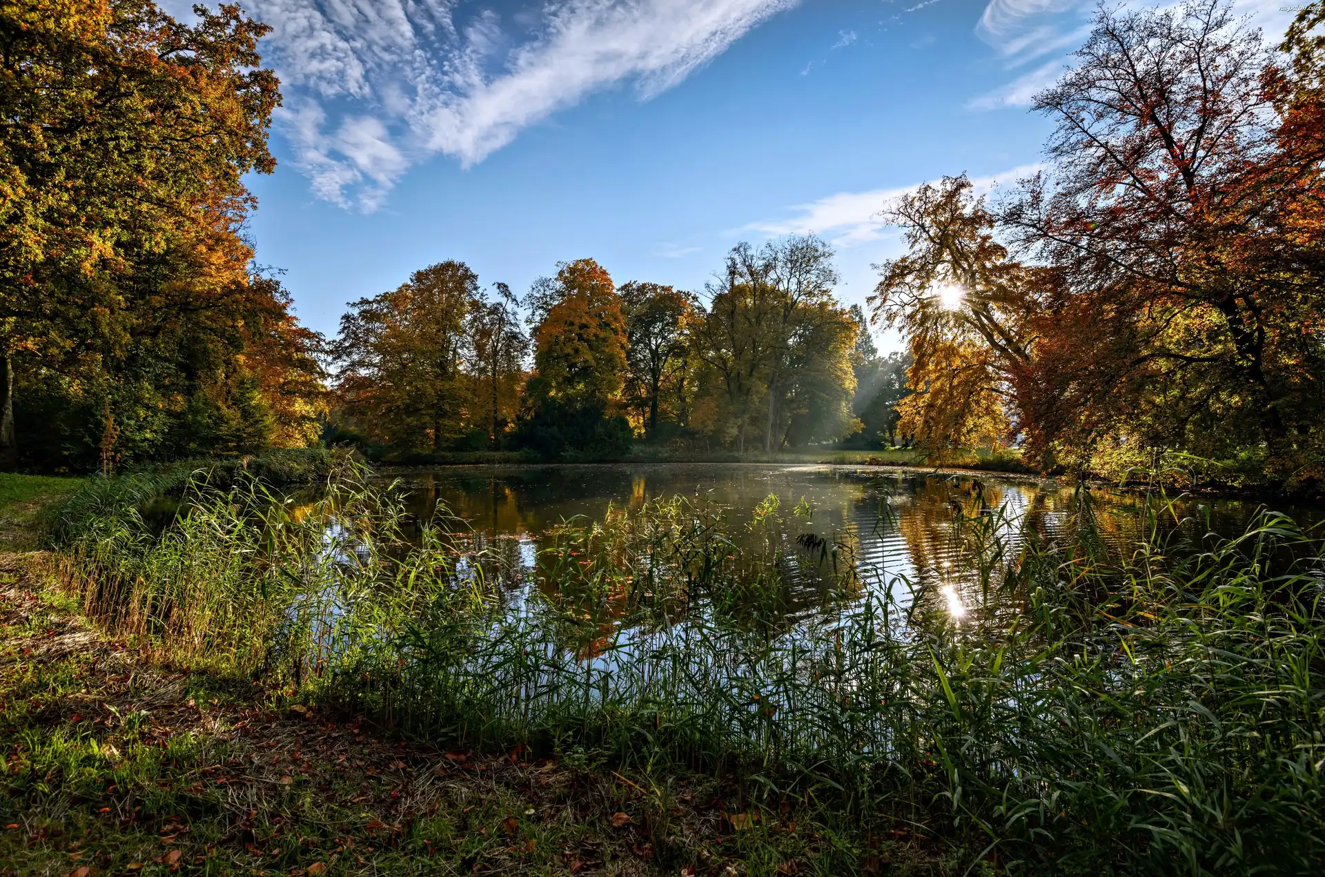 Wschód Słońca, Staw, Park, Mgła Na Pulpit