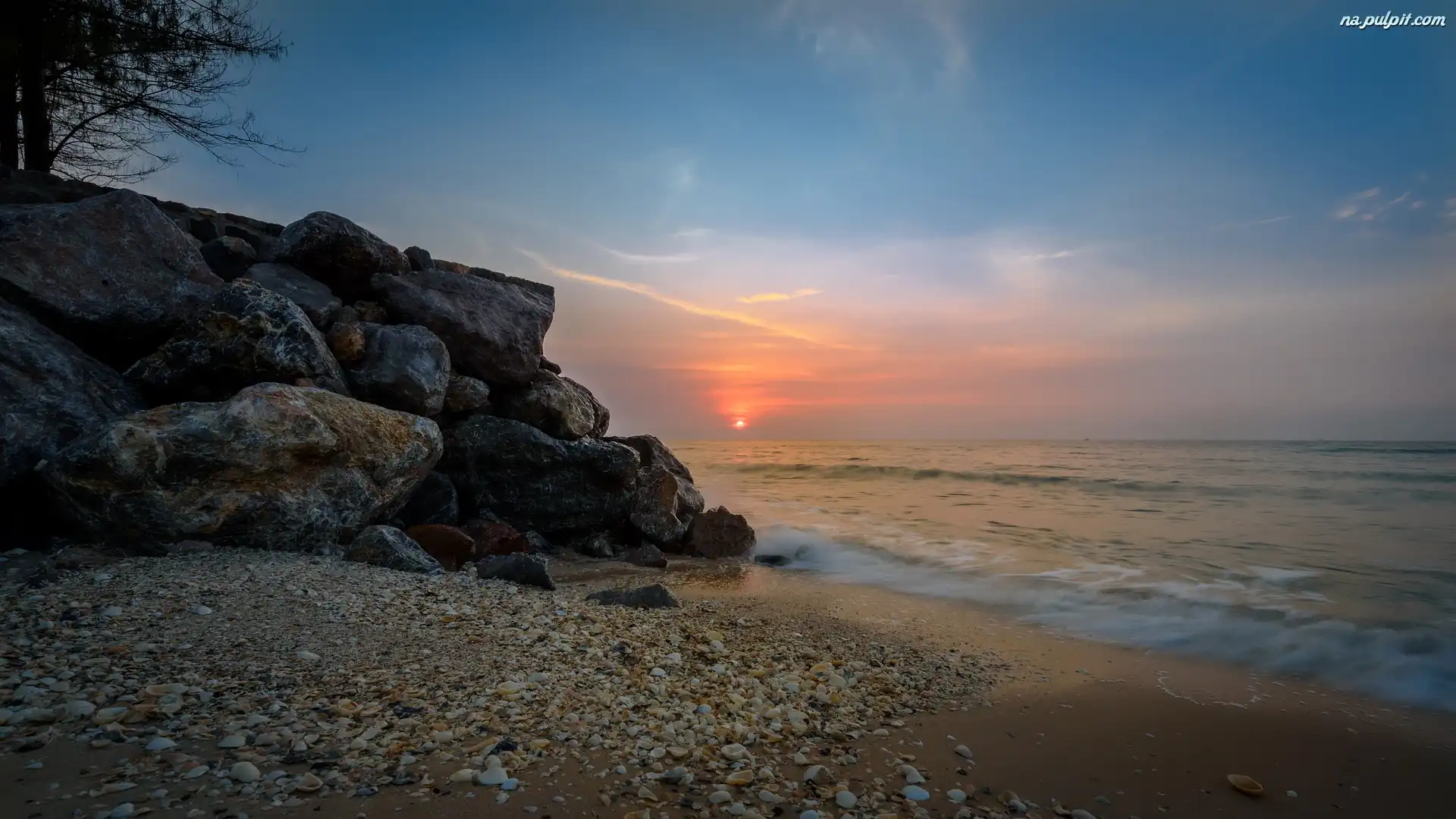 Skały, Wschód słońca, Tajlandia, Kamienie, Morze, Plaża Na Pulpit