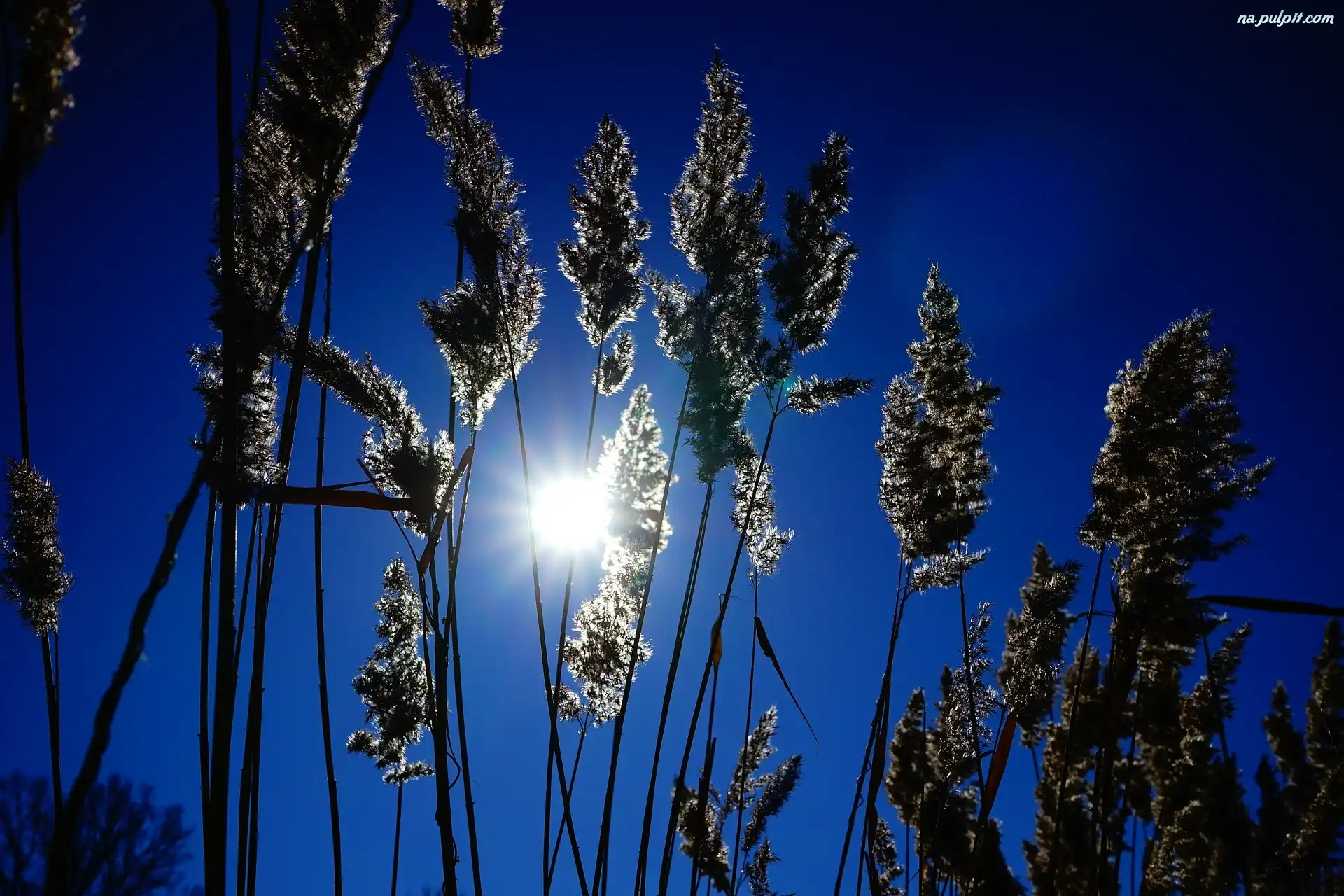 Wschód Słońca, Makro, Trzcina, Niebo Na Pulpit