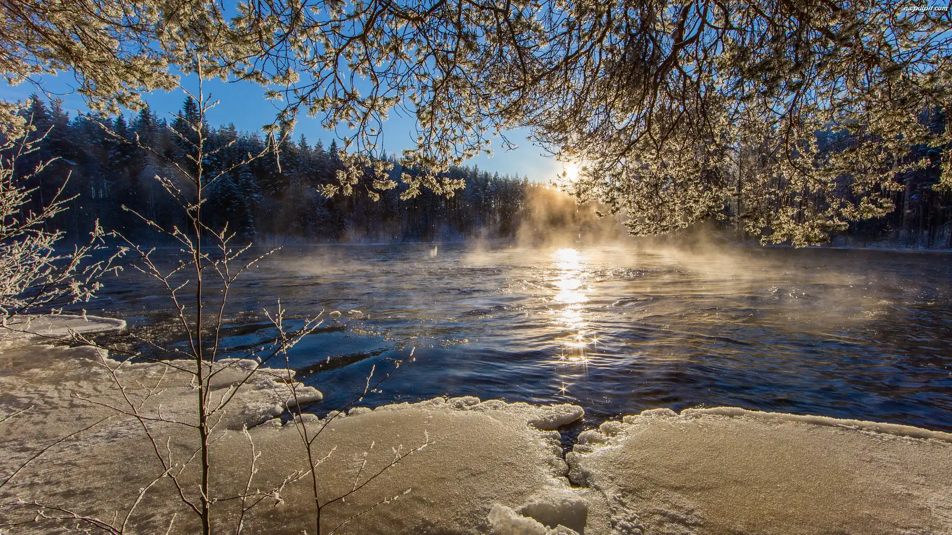 Wschód, Las, Mgła, Słońca, Zima, Rzeka Na Pulpit