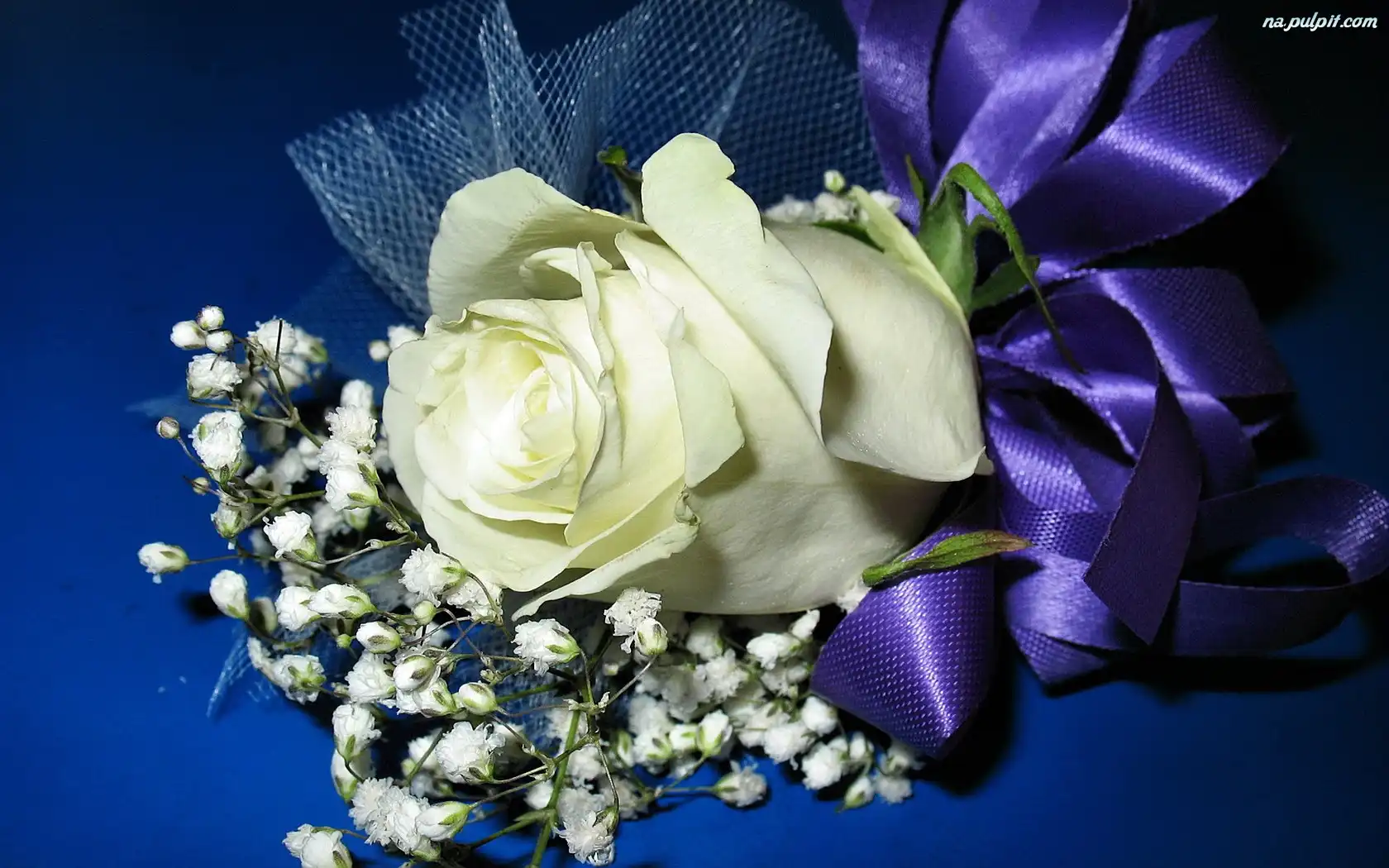 Wstążka, Róża, Biała, Niebieska Na Pulpit