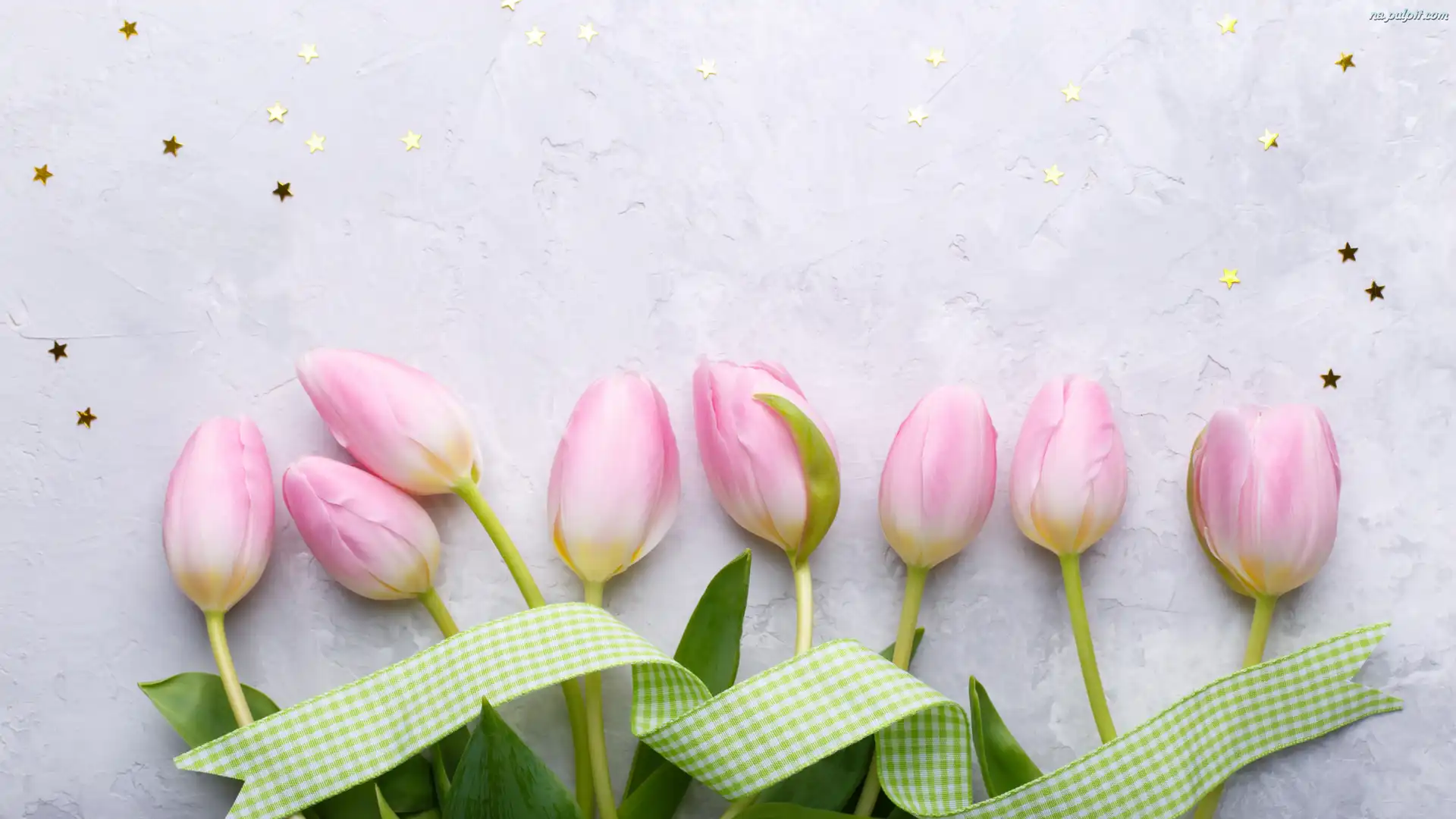 Wstążka, Tulipany, Bladoróżowe, Gwiazdki Na Pulpit